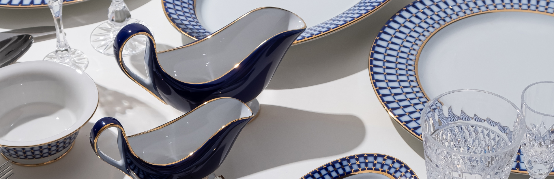 Благородное сочетание белоснежного фарфора и глубокой синевы кобальта, дополненное деликатным золотым декором, стало признанной классикой Императорского фарфорового завода. Галина Шуляк нашла новые вариации традиционного колорита, создавая торжественный облик сервиза. В резервах запечатлены знаменитые архитектурные ансамбли Санкт-Петербурга. Строгость и парадность классических форм передана в почти портретных изображениях памятников.