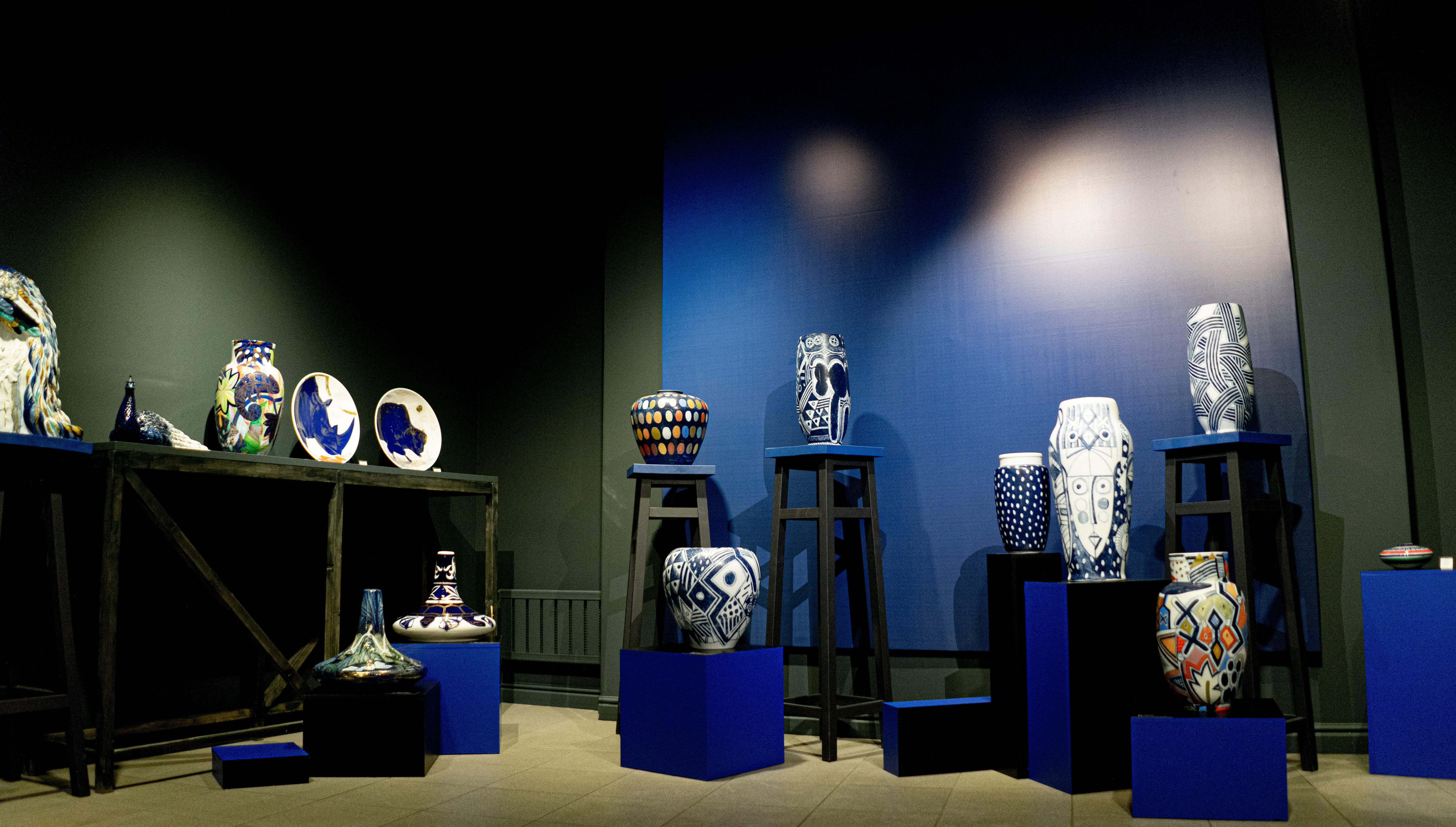Главный персонаж выставки – «вечный» кобальт. Эта синяя краска – главная фарфоровая краска для Императорского завода. Он всегда разный, но всегда узнаваемый. Кобальт кому-то напомнит голубое небо, кому-то Неву в солнечную погоду, кому-то густую синеву южной ночи. Разнообразие кобальтовой палитры сделало возможным подготовить новую выставку.
