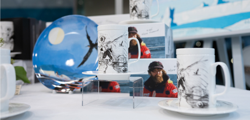 Рисунки для бокалов также связаны со знаковыми экспедициями. Эскиз «Алые паруса» Фёдор Конюхов сделал в океане во время своего одиночного плавания вокруг Антарктиды, а рисунок «Путь на Север» родился в момент подготовки к лыжной экспедиции на Северный полюс в команде Дмитрия Шпаро.