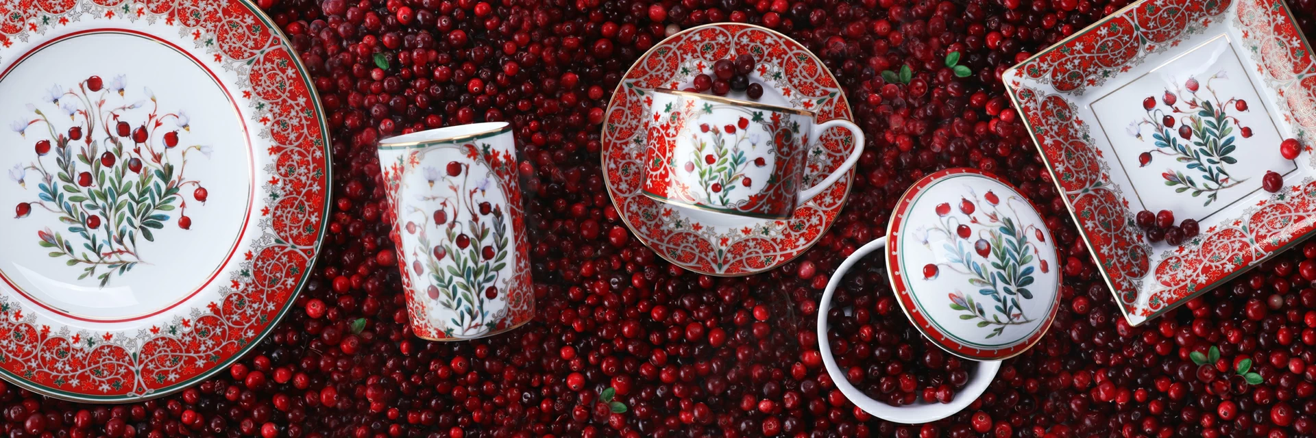 Коллекция «Клюква заповедная» отлично подойдет, чтобы наполнить дом атмосферой русского гостеприимства и природного благородства!