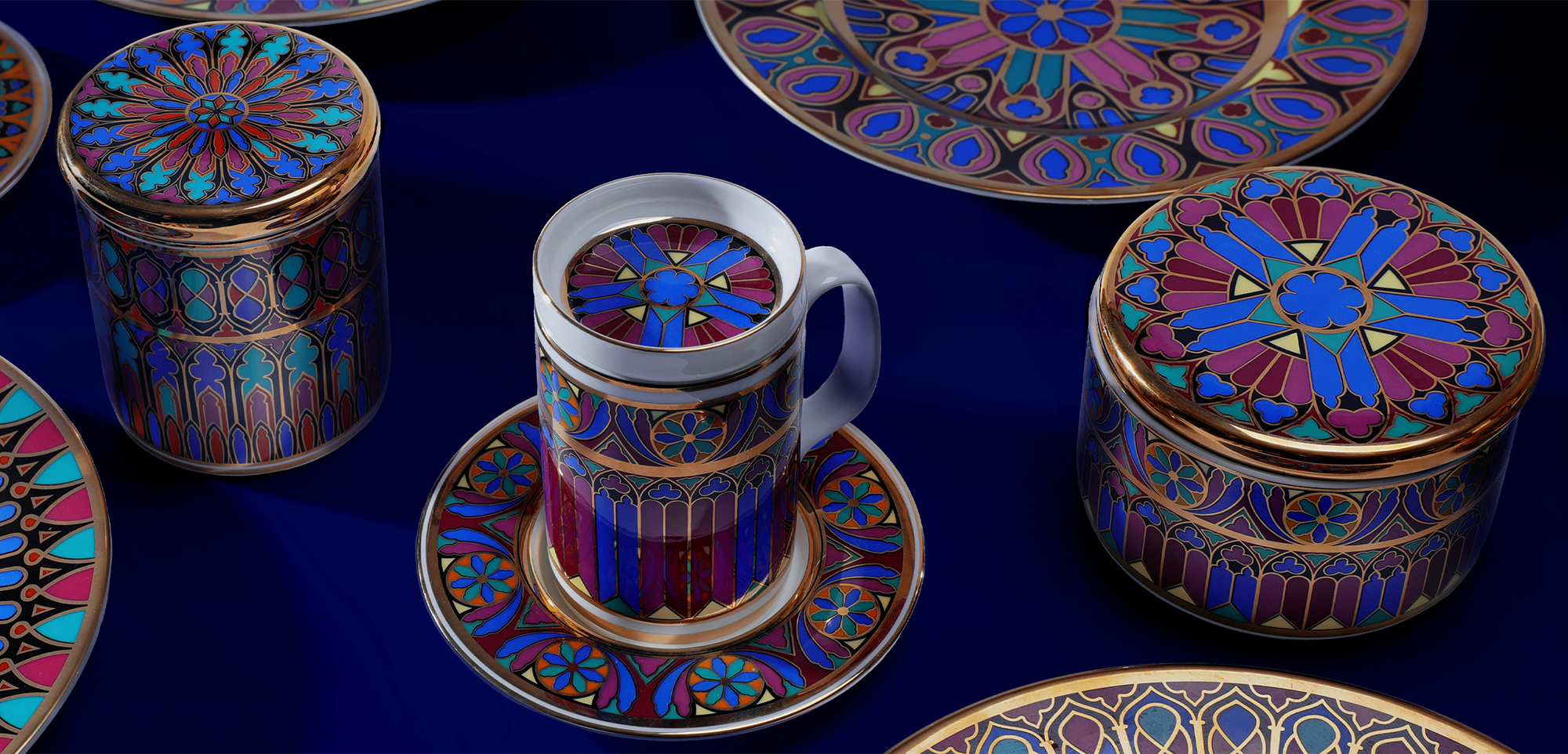 Императорский фарфоровый завод предлагает уникальное прочтение старинного стиля. Коллекция «Готический» создана в память о знаменитых изделиях прошлого: по одноименному сервизу и тарелкам, выполненным на ИФЗ в первой половине XIX века. Исторические изделия, в свою очередь, были исполнены по мотивам средневековых витражей.