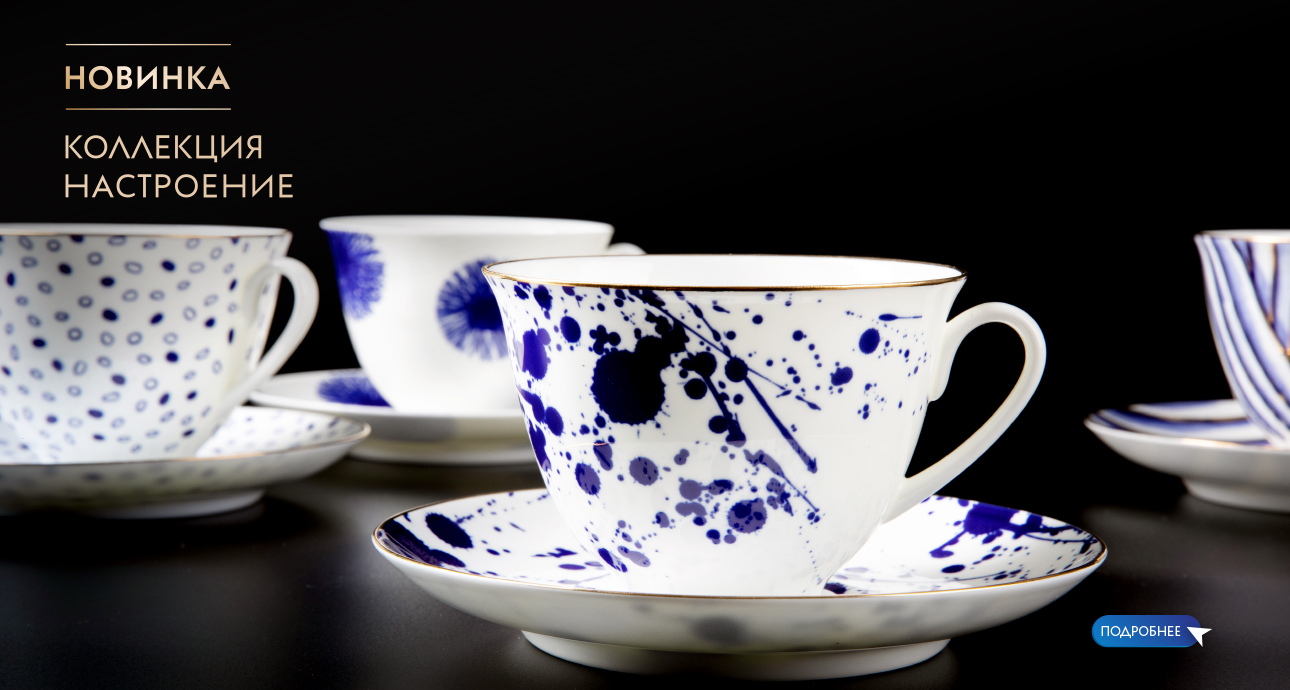 Коллекция «Настроение», прочно завоевавшая любовь поклонников «Императорского фарфора», в 2022 году пополнилась чайными парами. Уже знакомые монохромные графические рисунки, украсившие форму «Весенняя», выполнены в кобальтовом оттенке. Его насыщенность подчеркивает белизну и воздушность материала – костяного фарфора.