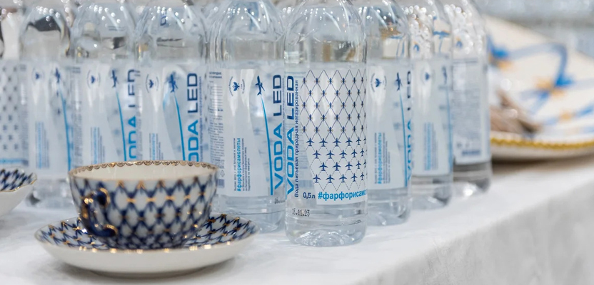 Петербургский аэропорт Пулково запустил лимитированную серию питьевой воды Voda Led вместе с Императорским фарфоровым заводом. Упаковку бутылок украсил узнаваемый дизайн ИФЗ — кобальтовая сетка, созданный почти 80 лет назад.