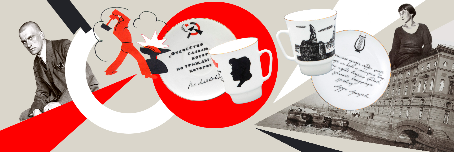 Свои новые работы художник Сергей Соколов посвятил гениям Серебряного века: Анне Ахматовой и Владимиру Маяковскому. Символично, что продолжением линейки стали именно эти кофейные пары – настолько разным темпераментом обладали поэты, настолько непохожа их лирика. Кофейная пара «Ахматова» посвящена дореволюционному творчеству поэтессы, а «Маяковский» – его футуристической лирике.