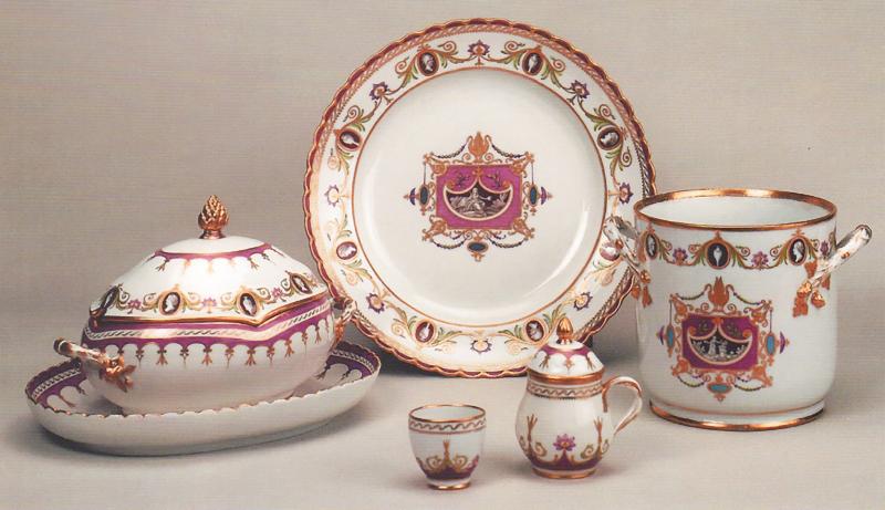Конец ХVIII века стал временем расцвета русского фарфора, Императорский завод становится одним из ведущих в Европе. Вершину славы Императорского завода составили заказанные Екатериной II роскошные сервизные ансамбли — «Арабесковый», «Яхтинский», «Кабинетский», насчитывающие до тысячи предметов. Также в золотой фонд той поры входят скульптурные портреты государыни и многофигурные настольные украшения, прославляющие ее деяния.