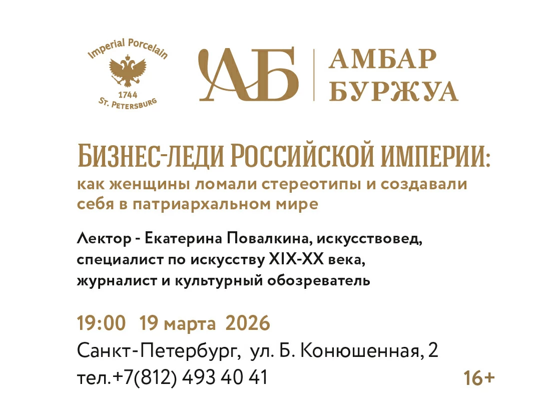 19 марта в 19:00 галерея Амбар Буржуа приглашает вас на лекцию “Бизнес-леди Российской империи: как женщины ломали стереотипы и создавали себя в патриархальном мире”.