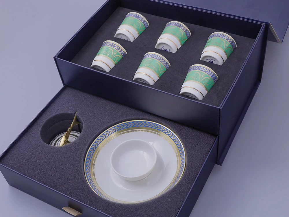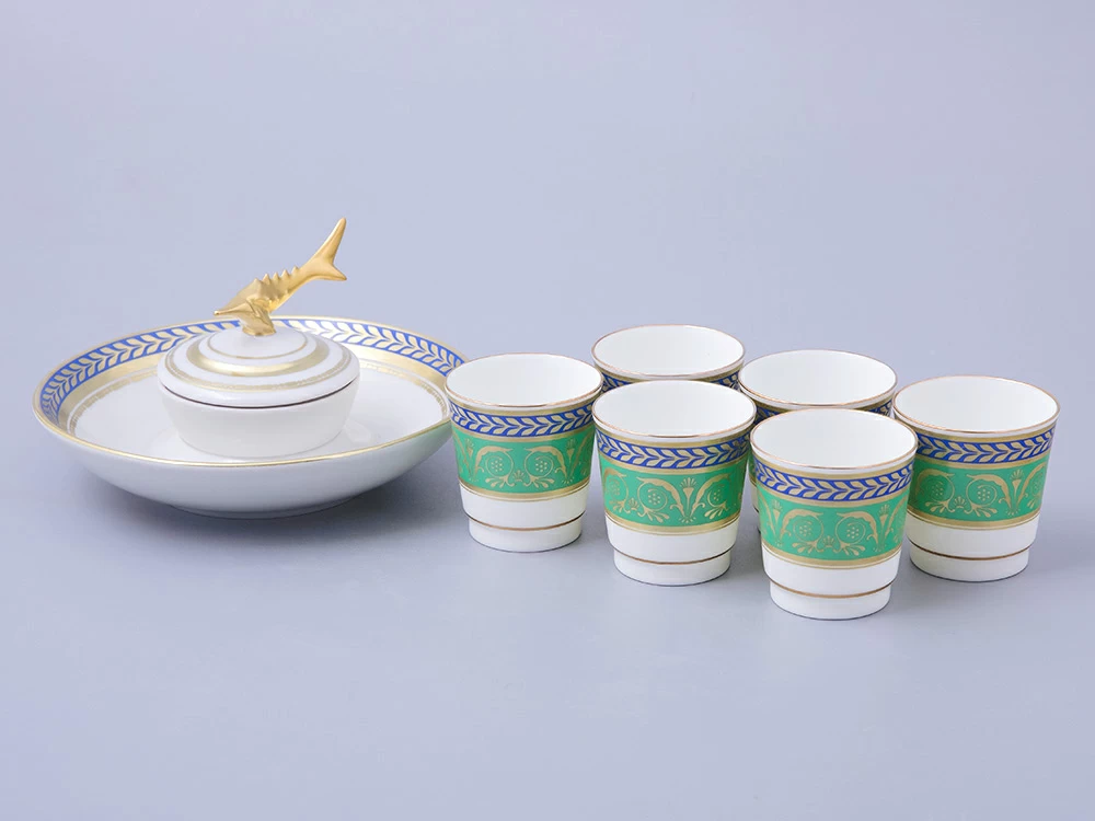 Стопки и икорница – традиционные аксессуары русского застолья. Набор стопок с икорницей «Золотой» стал продолжением одноименной классической коллекции, которая включает в себя чайный, кофейный и столовый сервизы.
