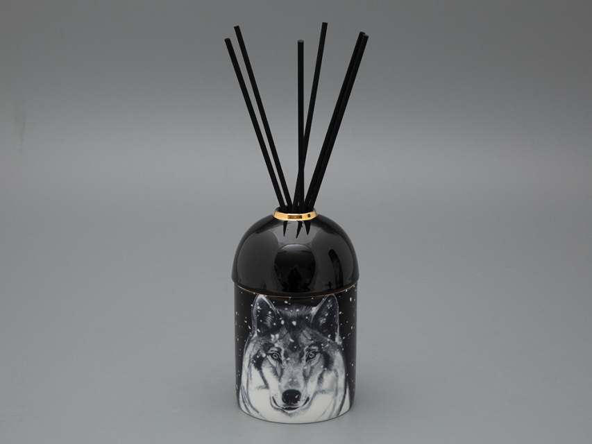 Перенеситесь на морские просторы с ароматом диффузора «Балтийский берег». Сочетание свежих нот с морской солью и капелькой цитрусовых даст возможность помечтать о долгих прогулках по ветреной Куршской косе. А после прохладных нот, словно тепло камина и ароматный чай, вас согреют темный мускус с амброй и терпкий кардамон со сладкой сливой в «сердце» аромата. Флакон из костяного фарфора украшен изображением волка. Волк – удивительный зверь, чей образ символизирует преданность семье и семейным ценностям, способность постоять за свой дом. Аксессуар с изображением волка станет стильным дополнением интерьера и много скажет о своем владельце. Благодаря элегантной, строгой форме и эффектной черной крышке диффузор безупречно подходит как для классического, так и для современного интерьера.