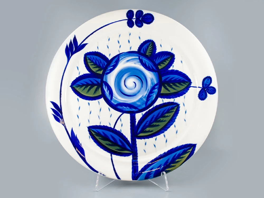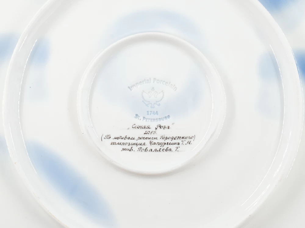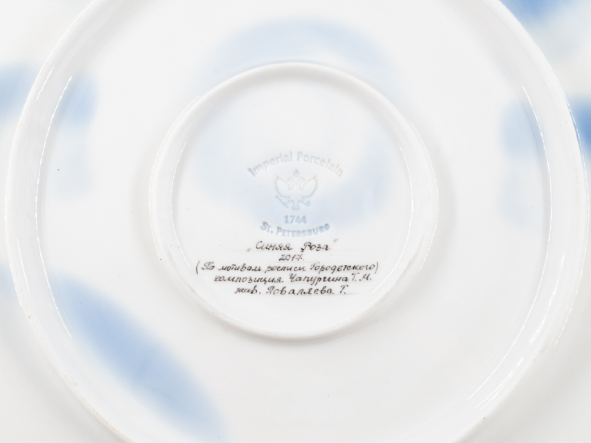 Владимир Городецкий – один из мастеров подглазурной живописи середины XX века, стоявший у истоков возрождения этой техники на Ленинградском фарфоровом заводе им. Ломоносова (сегодня – Императорский фарфоровый завод). Современные мастера отдают дань великому мэтру, сделавшему колоссальный вклад в историю подглазурной росписи. Один из излюбленных мотивов художника – синяя роза – взята за основу в серии произведений и трактована Татьяной Чапургиной сквозь призму своего видения. В итоге получились изысканные изделия, ярко декоративные, выразительные, связывающие времена и эпохи в одну бесконечную нить истории фарфорового искусства.