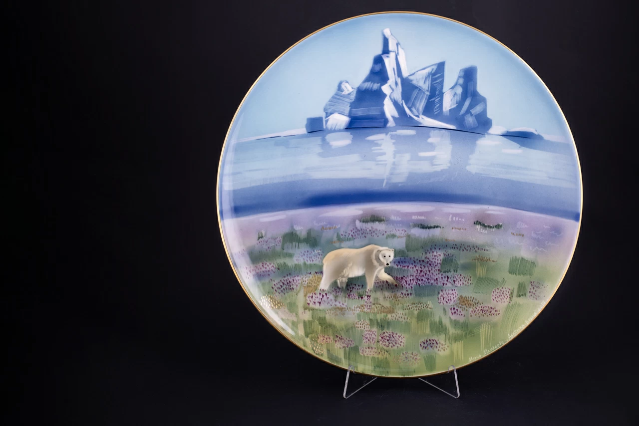 На обороте блюда подпись художника, название "Арктика. Весна" 2017