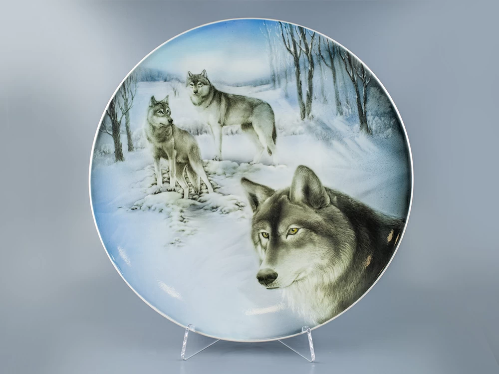 Блюдо декоративное 450 мм, форма Круглая, рисунок Волки, арт 80.88997.00.1