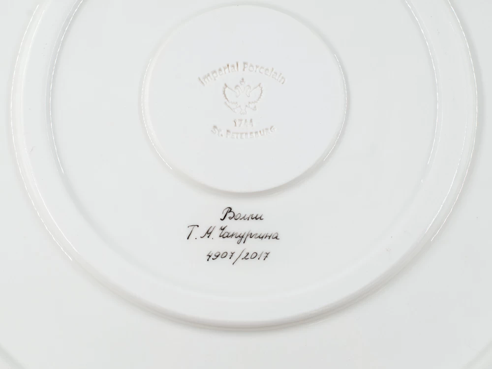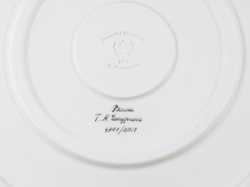 Декоративное блюдо изготовлено на Императорском фарфоровом заводе из твердого фарфора