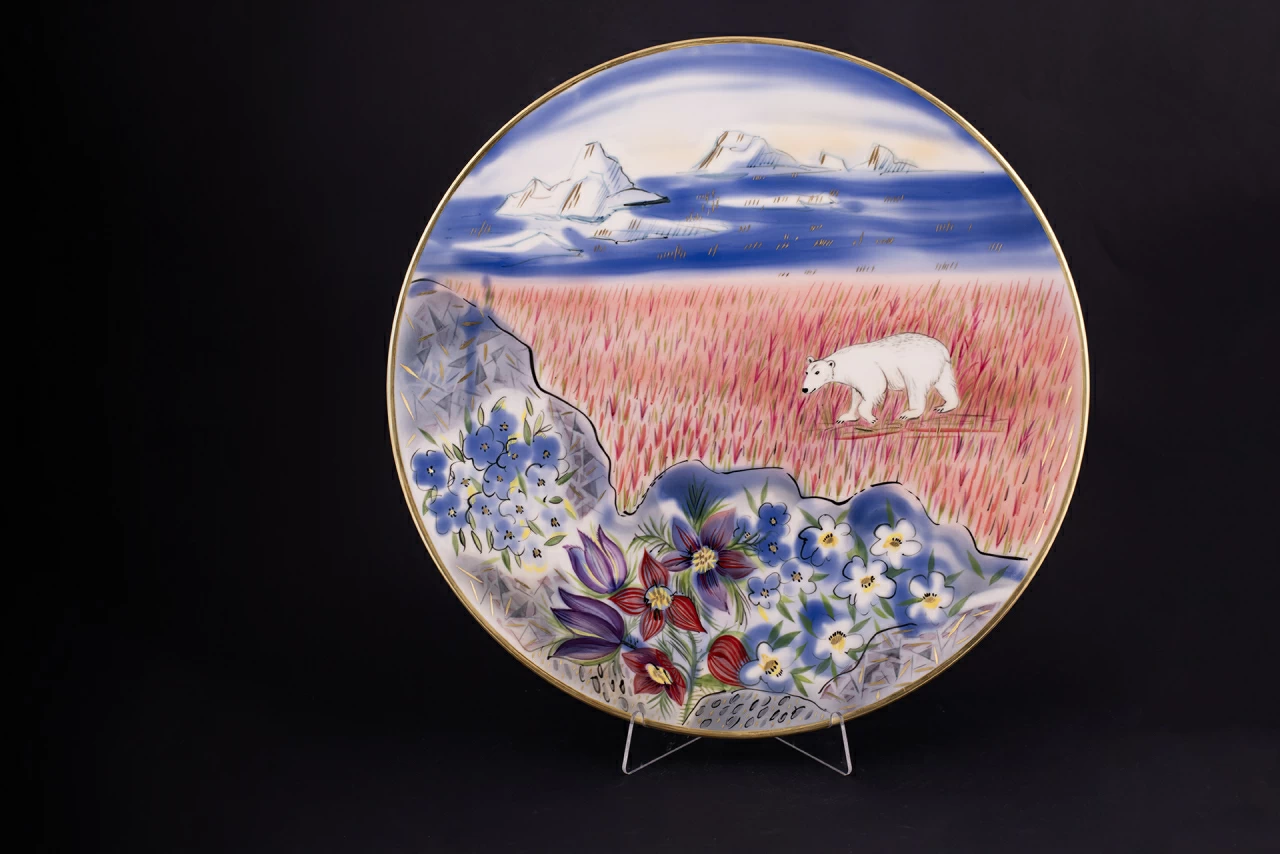 Блюдо декоративное 450 мм, Весенняя Арктика.Медведица на форме Круглая, арт 60.14740.00.1