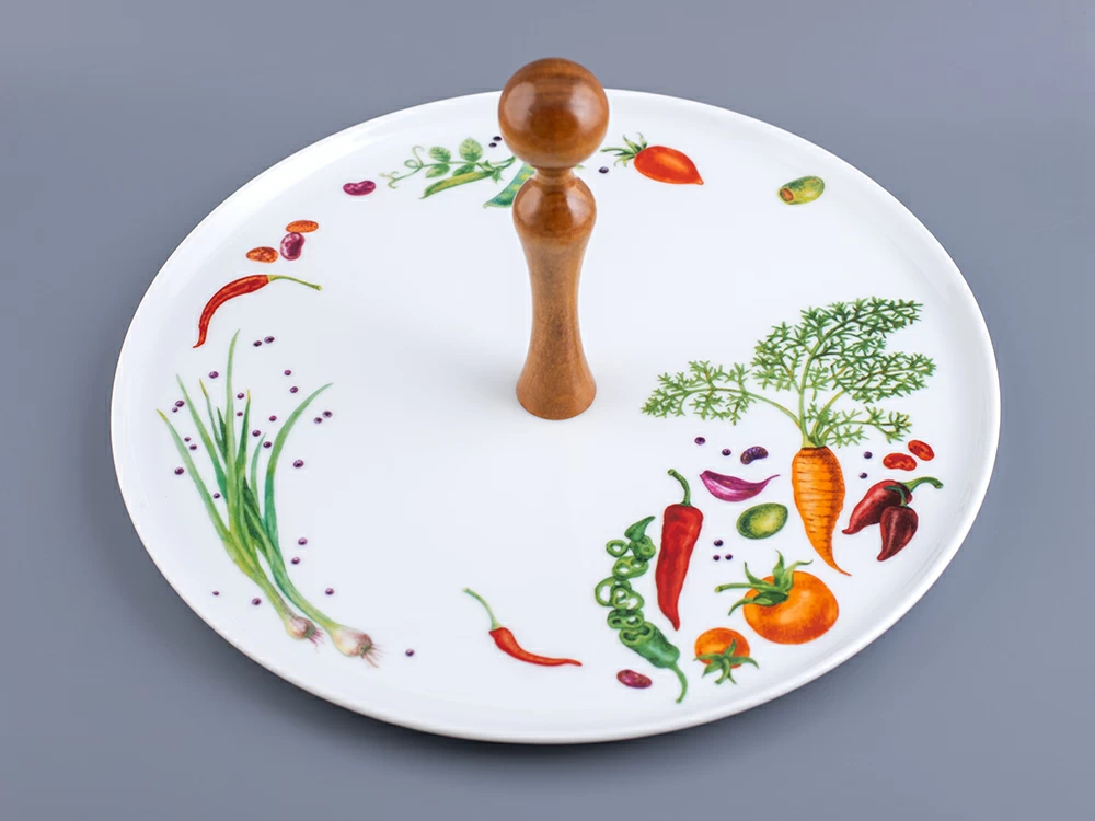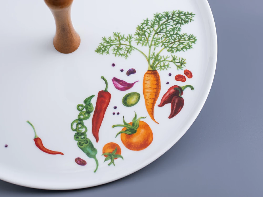 Наверное, почти у каждого человека сохранились теплые воспоминания о летних каникулах, проведенных на даче: беззаботное время, наполненное семейными встречами, шумными обедами и теплыми воспоминаниями. Коллекция «Мамина дача» поможет воспроизвести эту атмосферу благодаря ярким рисункам, нанесенным на разные предметы сервировки: сочные огурцы и помидоры, перец и горох, яркие корнеплоды. Рисунки, несмотря на определенную долю стилизации, выполнены с тонкой проработкой, подчеркивая красоту каждого овоща.