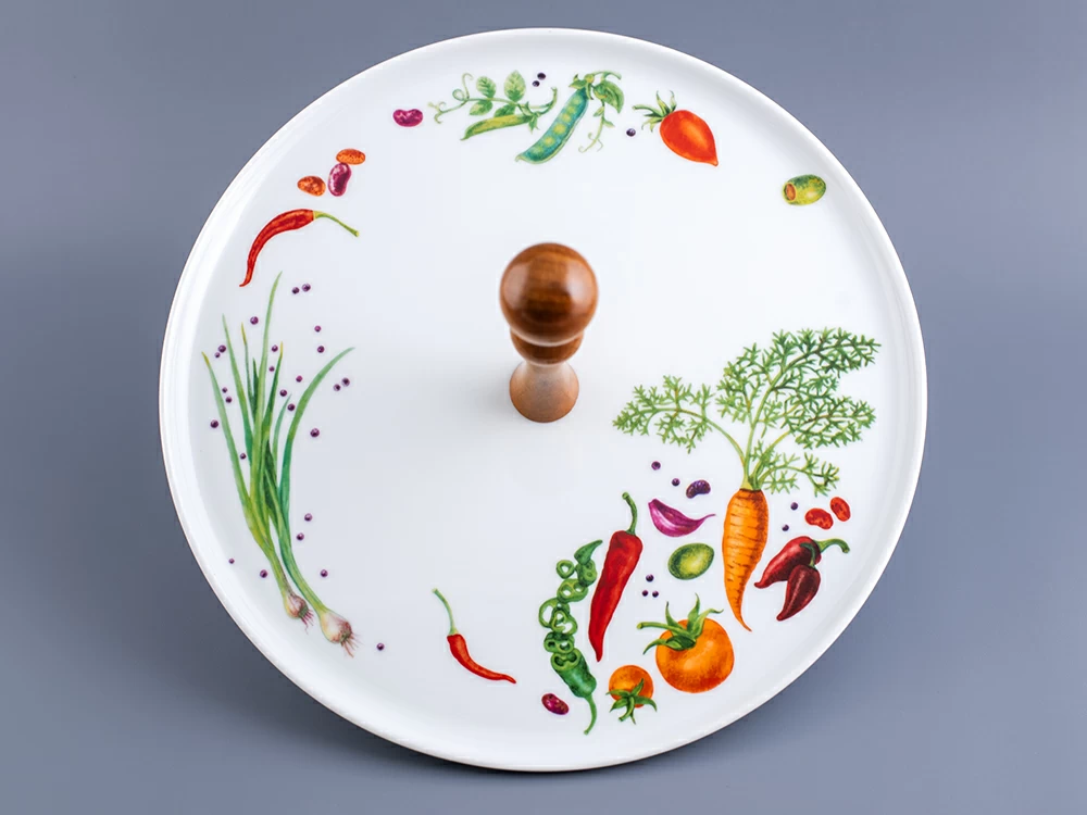 Коллекция фарфора «Мамина дача» вдохновлена теплотой летних дней, свежестью вкуснейших овощей с собственного огорода и уютом загородной жизни.