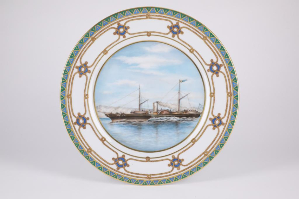 Декоративное блюдо изготовлено на Императорском фарфоровом заводе из твердого фарфора