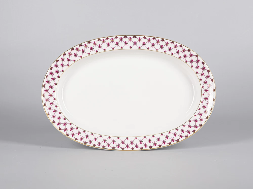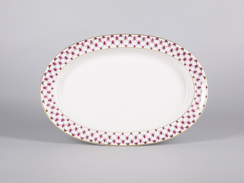 «Сетка-блюз» - это современная интерпретация росписи «Кобальтовая сетка», ставшей признанной классикой Императорского фарфорового завода. Розовый цвет отсылает к прообразу этого легендарного мотива – «Собственному» сервизу Императрицы Елизаветы Петровны, выпущенного в 1750-х годах, а ныне хранящегося в коллекции Государственного Эрмитажа.