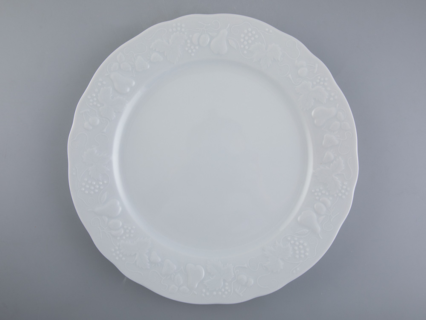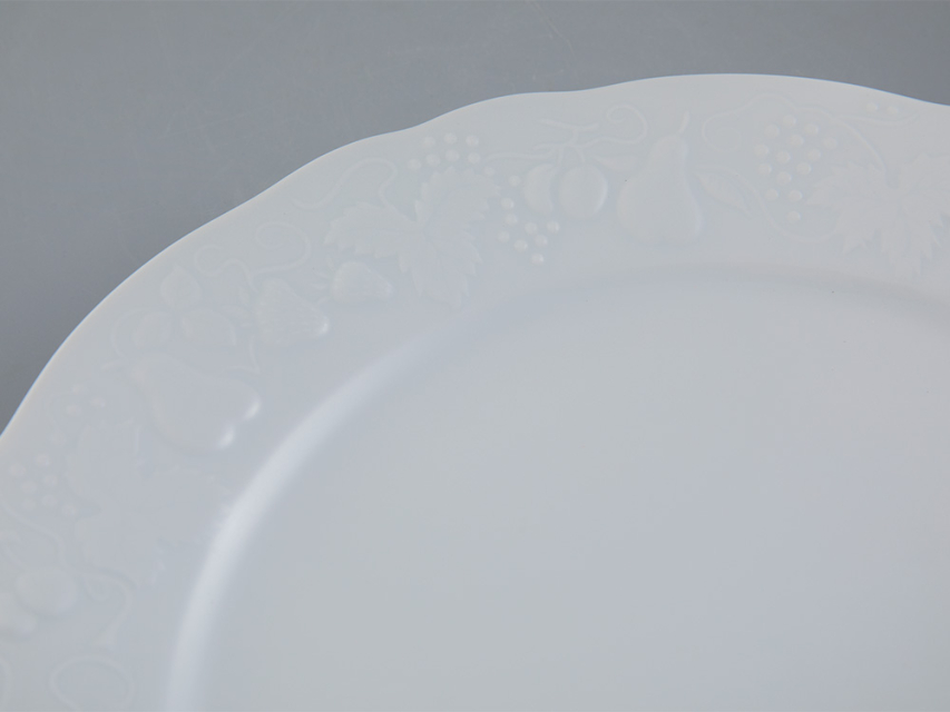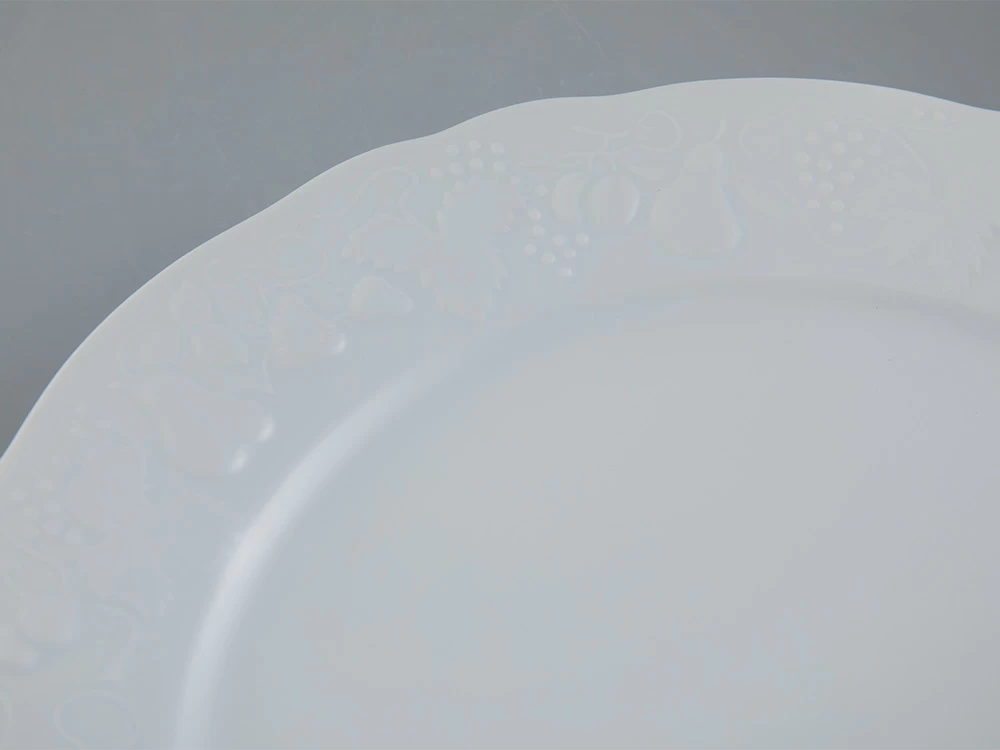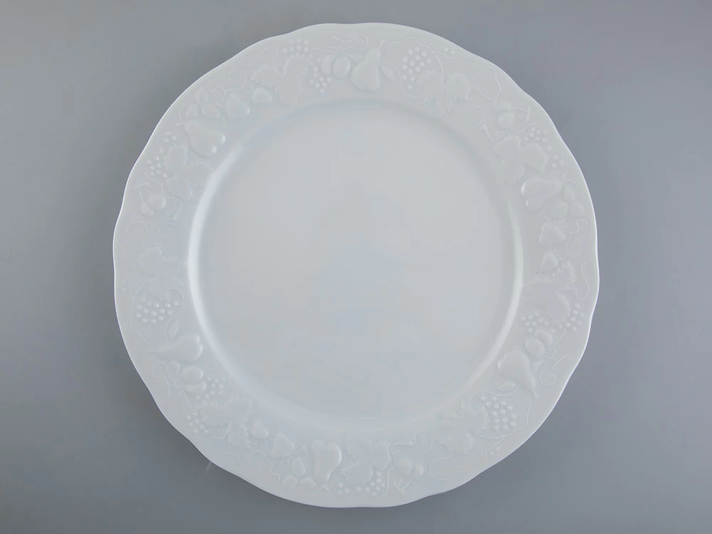Блюдо изготовлено на французском заводе Deshoulieres из твердого фарфора с рельефным узором