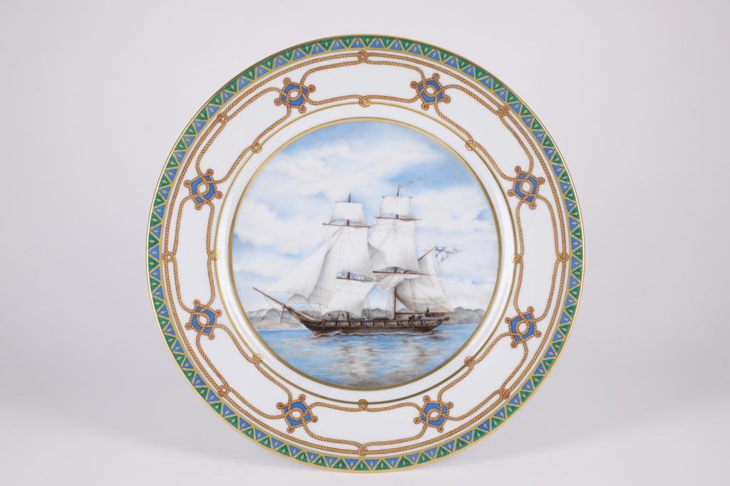 Декоративное блюдо изготовлено на Императорском фарфоровом заводе из твердого фарфора рисунок Морская держава. Дружба