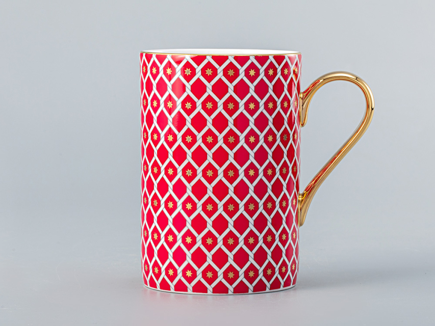 Как и исторические прототипы, роспись, исполненная в XXI веке, строится по образцу популярной в середине XVIII века «трельяжной решетки», отвечающей вкусам эпохи рококо. Строгий геометрический декор, задающий основной ритм, художник Юлия Чистякова смягчает мягкими заливками цвета и золотыми акцентами в виде разновеликих изображений рождественской звезды. В 2021 году серия «Скарлетт» была дополнена удобными бокалами объемом 400 мл.