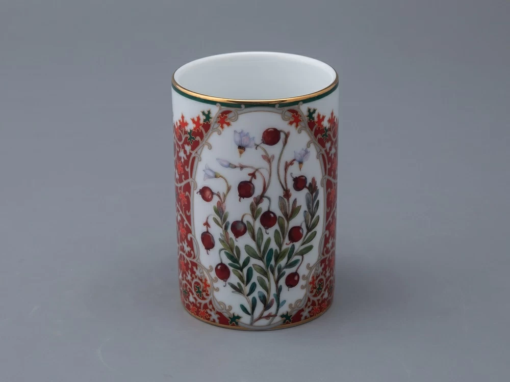 Бокал «Клюква заповедная» вошел в продолжение коллекции «Цветы и ягоды России» от художника Ольги Будашовой. В своих работах автор зачастую изображает цветы и дары природы, – такой декор остается вне времени. Используя растительные мотивы, Ольга Будашова создает предметы, которые сочетают в себе искусство и практичность. Композиция на фарфоре, выполненная в эстетике винтажных ботанических иллюстраций, дополнена орнаментальным узором – авторским размышлением на тему национальной вышивки.