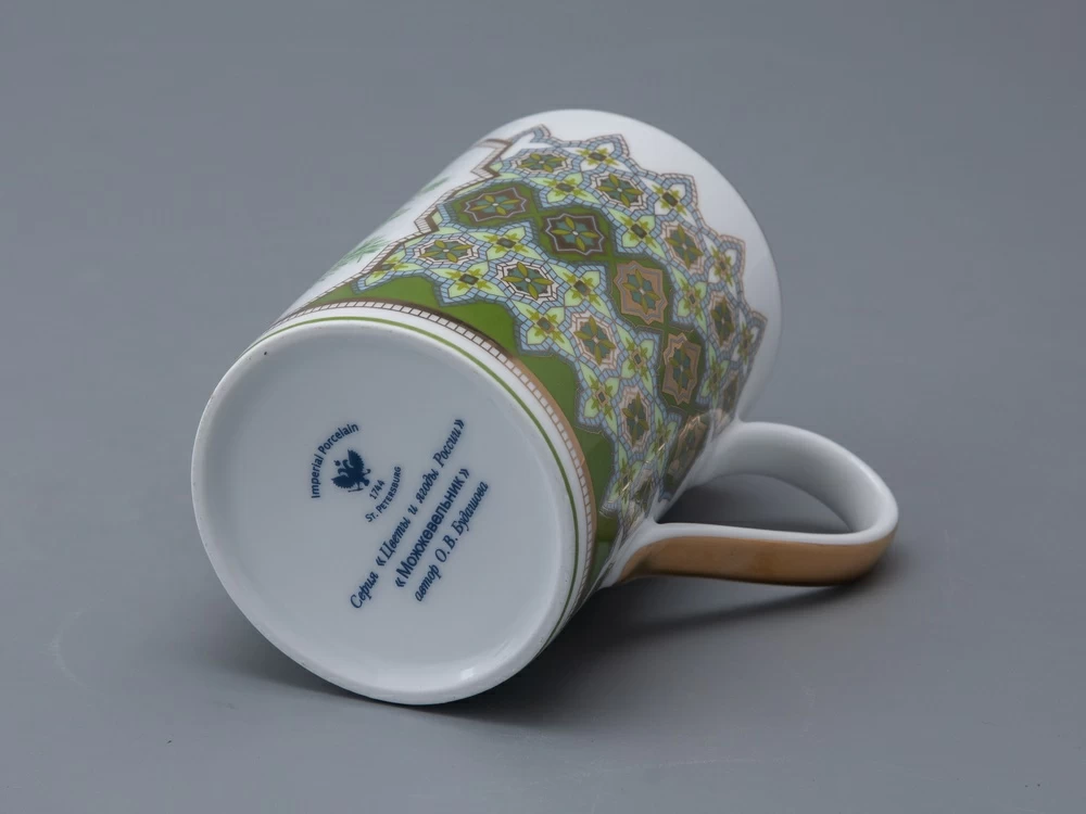 Бокал «Можжевельник ароматный» вошел в продолжение коллекции «Цветы и ягоды России» от художника Ольги Будашовой. В своих работах автор зачастую изображает цветы и дары природы, – такой декор остается вне времени. Используя растительные мотивы, Ольга Будашова создает предметы, которые сочетают в себе искусство и практичность. Композиция на фарфоре, выполненная в эстетике винтажных ботанических иллюстраций, дополнена орнаментальным узором – авторским размышлением на тему национальной вышивки.