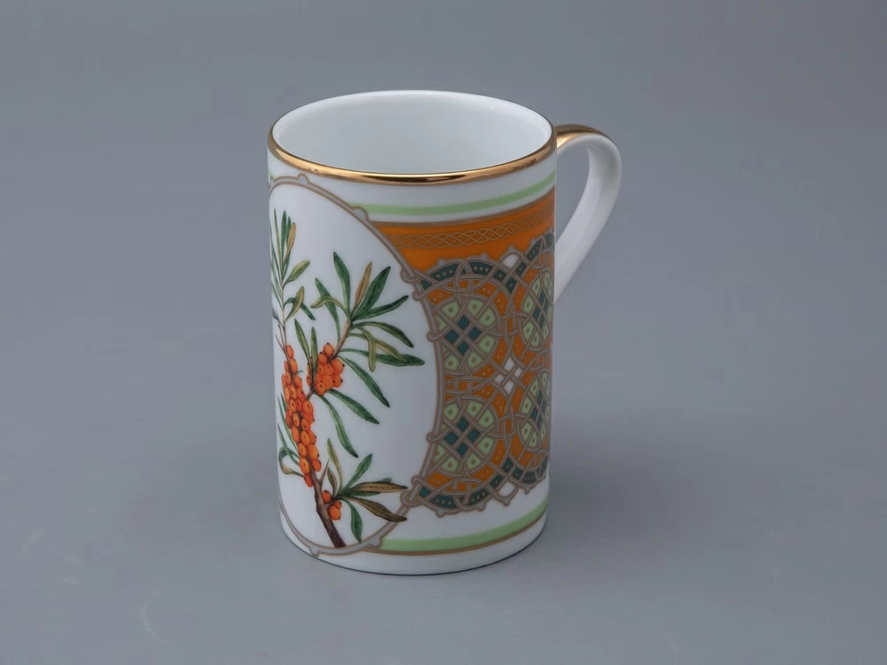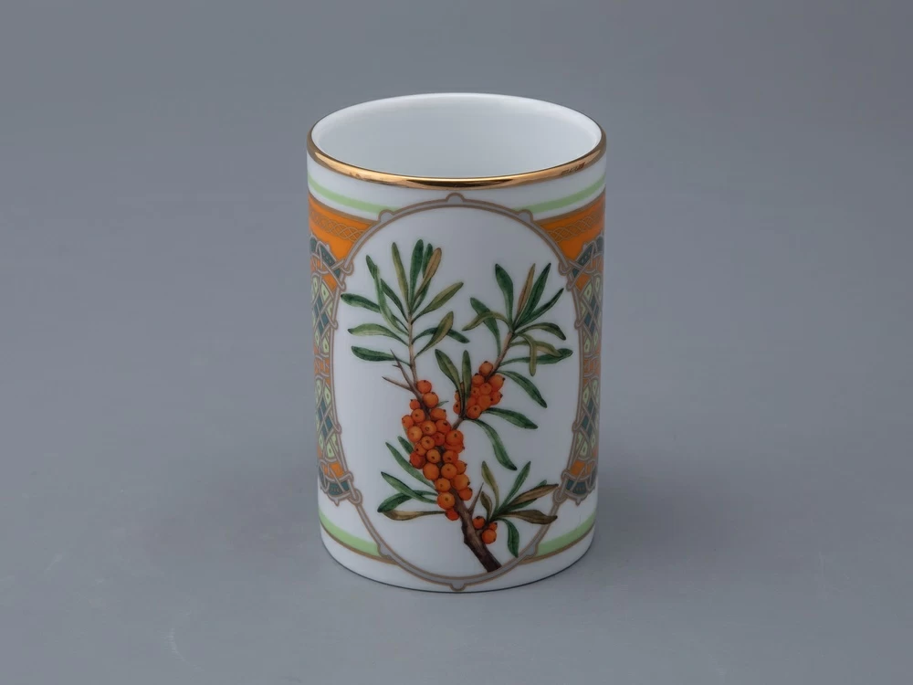 Бокал «Облепиха сибирская» вошел в продолжение коллекции «Цветы и ягоды России» от художника Ольги Будашовой. В своих работах автор зачастую изображает цветы и дары природы, – такой декор остается вне времени. Используя растительные мотивы, Ольга Будашова создает предметы, которые сочетают в себе искусство и практичность. Композиция на фарфоре, выполненная в эстетике винтажных ботанических иллюстраций, дополнена орнаментальным узором – авторским размышлением на тему национальной вышивки.