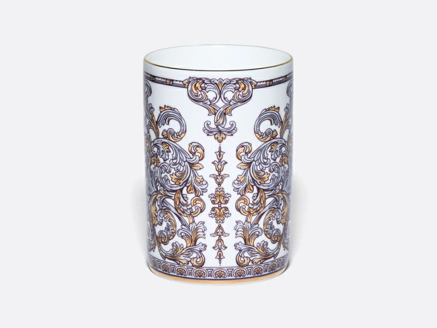 Бокал «Барокко» из костяного фарфора от художника Светланы Козлобродовой приглашает в эпоху роскоши. Белоснежный фарфор служит идеальным холстом для сложного декора, вдохновленного стилем барокко с его торжественностью и богатство орнамента.