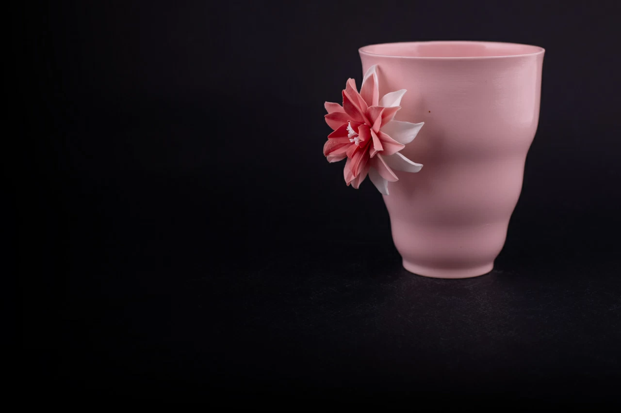 Бокал для салфеток, форма Флора фарфора, Розовый с розовым крупным цветком, арт 60.06878.00.1