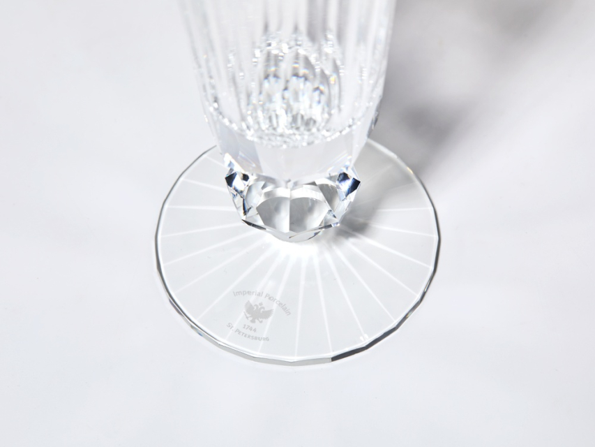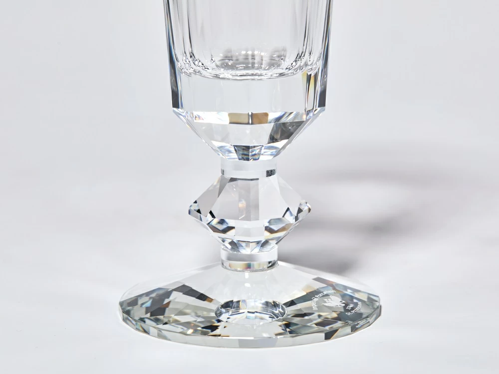 Каждый предмет – результат кропотливой ручной работы опытных мастеров. В коллекцию входят элегантные бокалы для вина и шампанского, стакан для виски, стакан для воды, а также стопка для крепких напитков.