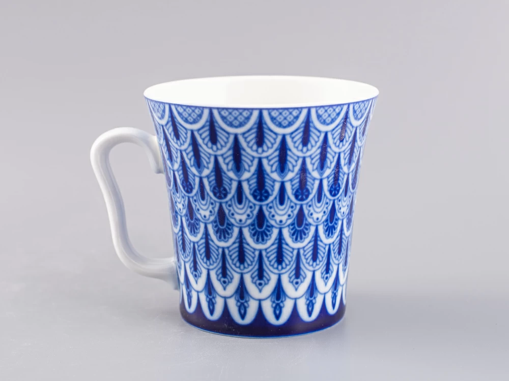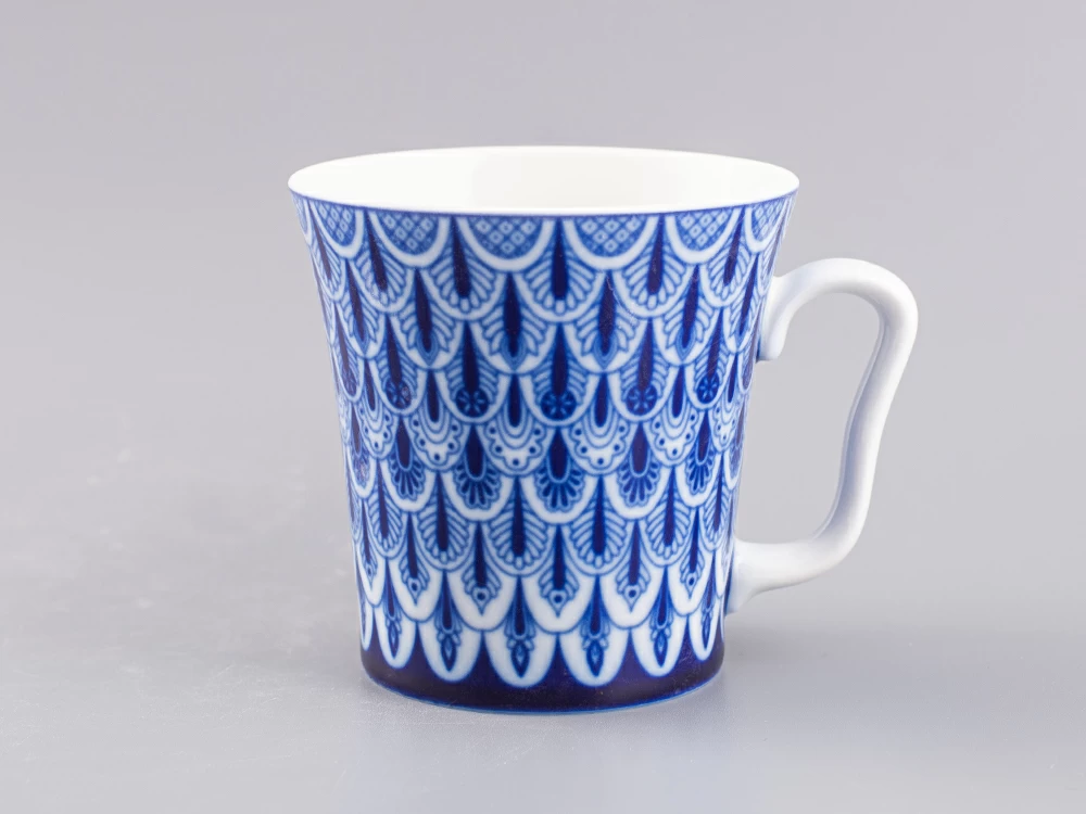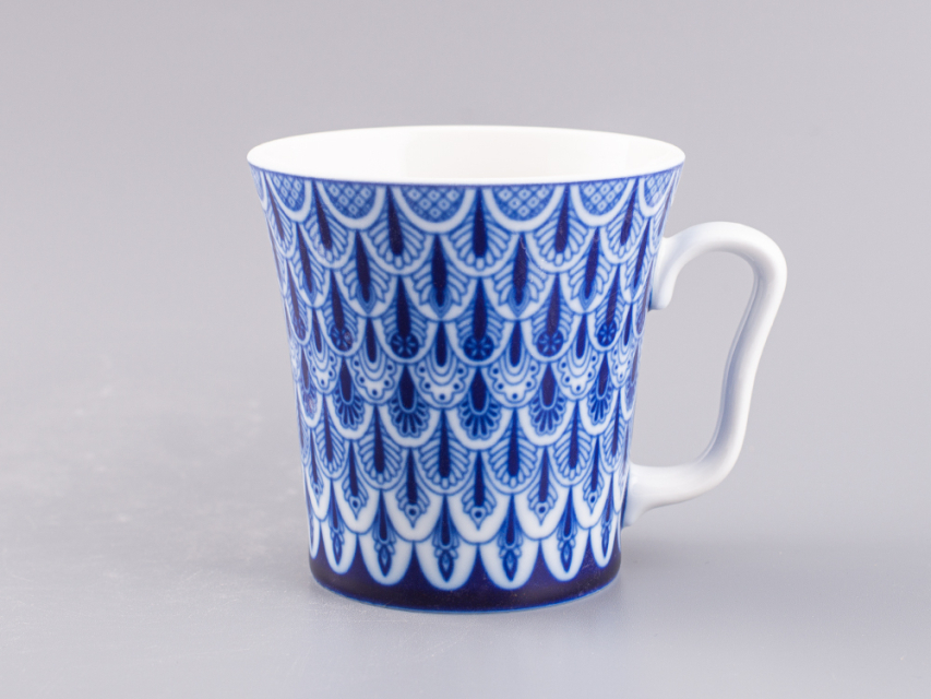 В серии Ажур знакомый многим кобальтовый декор, повторяющий кобальтовый рисунок «Незабудка» 70-х годов ХХ века автора Нины Славиной. Декор «Незабудка» выпускался на ЛФЗ более полувека на чайном сервизе формы «Лучистая» того же автора, а в новой серии представлен в новом облике – без золотых акцентов. Образ стал более нежным, стильным и современным в монохромном решении. Любопытно, что во время обжига при высокой температуре тонкие линии орнамента расплываются, создавая ореол вокруг рисунка, что придает декору этой серии небесный цвет.