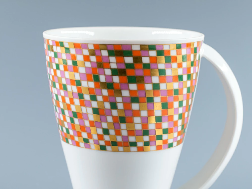 Серия чашек Инны Соломоновны Олевской – это утилитарная форма предмета в сочетании с простым и выразительным декором. Росписи выполнены в минималистической манере и построены на принципах лаконичной геометрии и тонко подобранных цветовых сочетаниях. Точное дизайнерское решение выдает в авторе форм и росписей опытного и необычайно талантливого мастера.