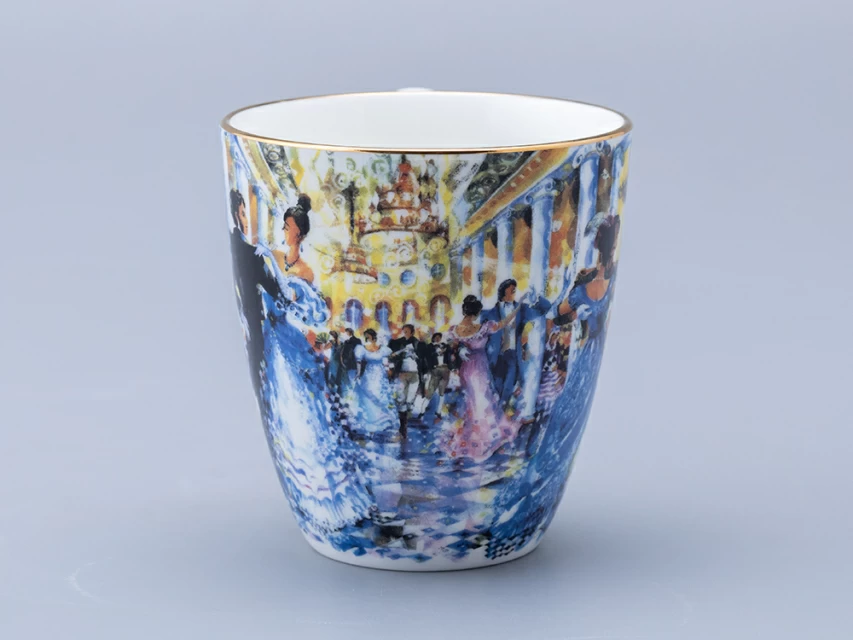 "Бокал «Бал пушкинских героев» вошел в линейку фарфора из совместного проекта Императорского фарфорового завода и художника Миши Ленна. В этот раз художник решил обратиться к своей излюбленной теме – танцу, воплощенному через узнаваемых всеми персонажей. Александр Пушкин и Наталья Гончарова, погруженные в танец, олицетворяют романтику и страсть, которые пронизывают творчество поэта. Также в этот вечер среди танцующих пар можно увидеть образы персонажей из произведений Пушкина, которые словно оживают, добавляя волшебства в этот бал.