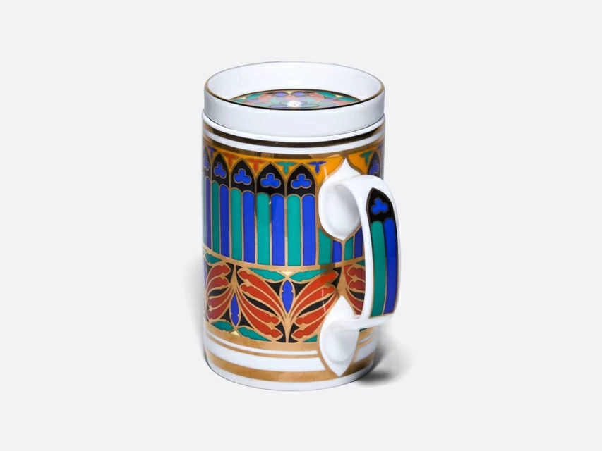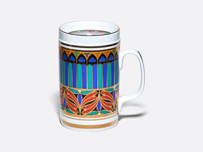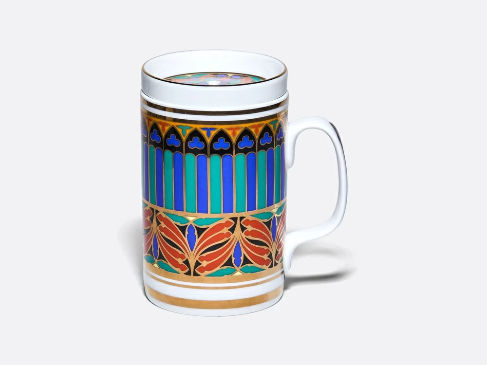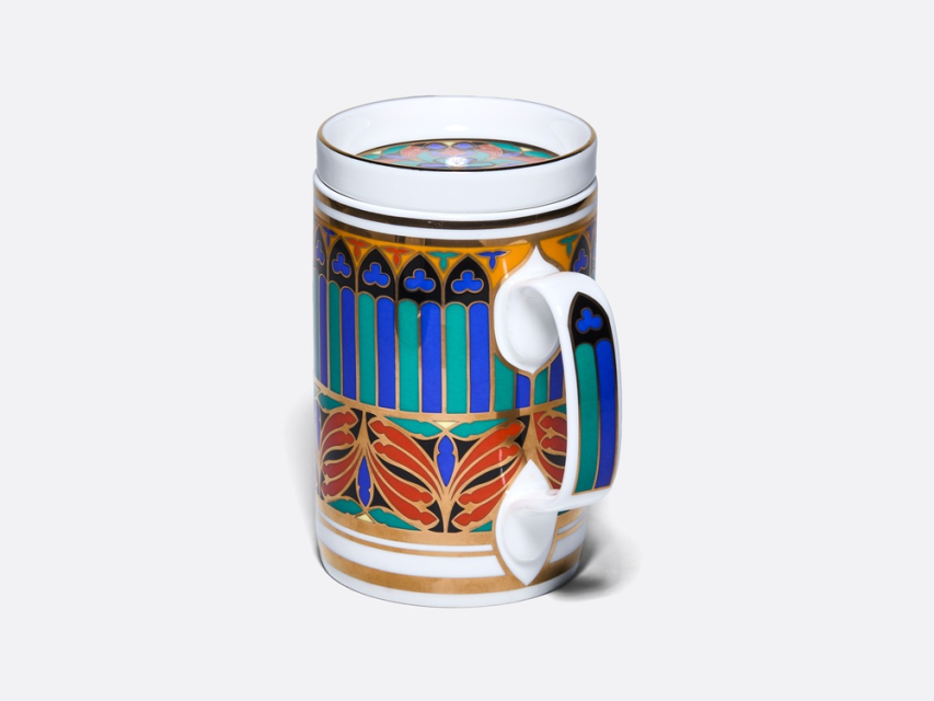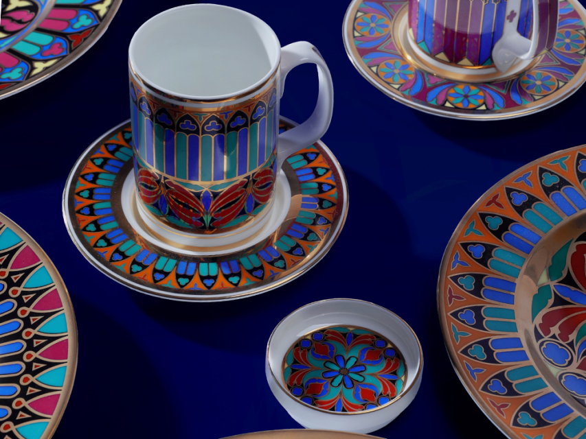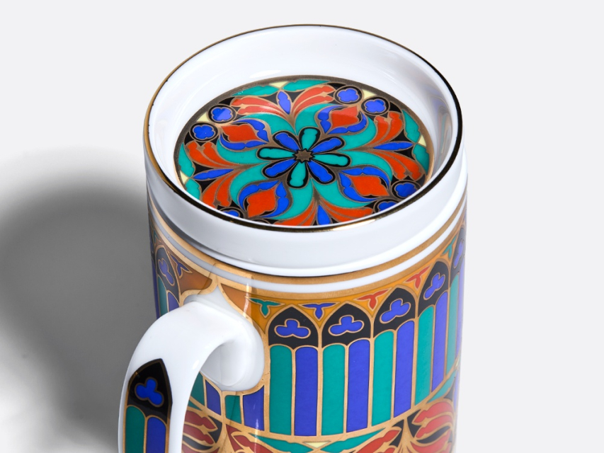 Роскошный орнамент бокала – дань уважения богатому наследию Императорского фарфорового завода и продолжение славной истории русского фарфора. В нем с первого взгляда узнаются мотивы знаменитого сервиза "Готический" и серии "Готических" тарелок первой половины XIX века. Круговая композиция, украшающая бокал и блюдце, воссоздает магию витражей и напоминает стрельчатые окна готических соборов. Рисунок на крышке продолжает тему, повторяя мотив витражной «розы», характерного элемента готических храмов. Цветовая палитра рисунка включает насыщенные оттенки красного, синего, зеленого и черного цветов, традиционно ассоциирующихся с готикой. Сочетание с белоснежным костяным фарфором и золотыми вставками создает контраст и ощущение игры света сквозь витражи древних храмов. Роскошный бокал с блюдцем и крышкой непременно привлечет внимание и станет эффектной деталью на вашем столе. Поставляется в подарочной упаковке, что делает ее прекрасным подарком для ценителей прекрасного. |