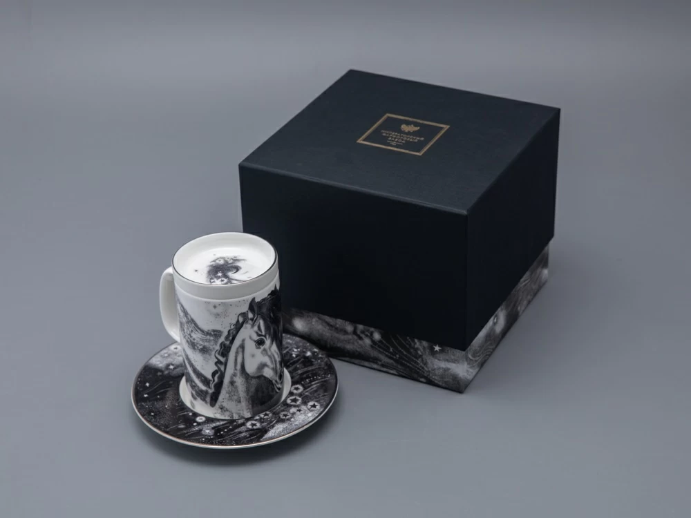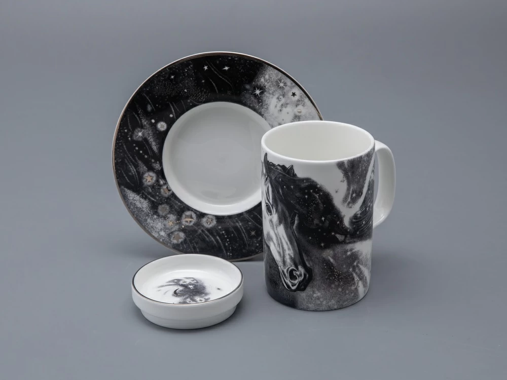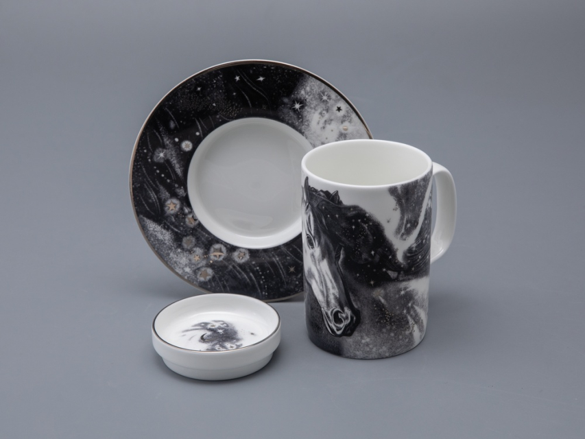 Серия «Черный мустанг» состоит из оригинального бокала с блюдцем и крышкой, а также декоративной тарелки, подходящей для украшения интерьера гостиной, кухни или кабинета. Простота и утонченность дизайна позволят гармонично вписать изделия во многие направления декора – от классической роскоши до строгого минимализма. Серия «Черный мустанг» станет прекрасным подарком к наступающим праздникам, дополнением вашего жилого пространства, подарит атмосферу уверенности и гармонии.