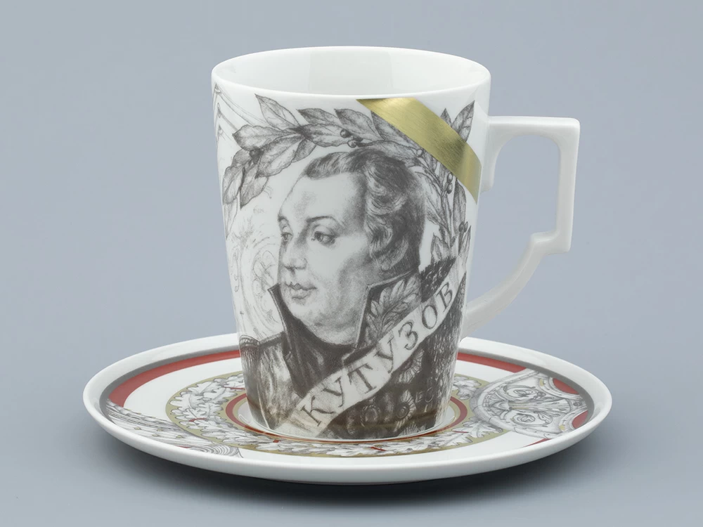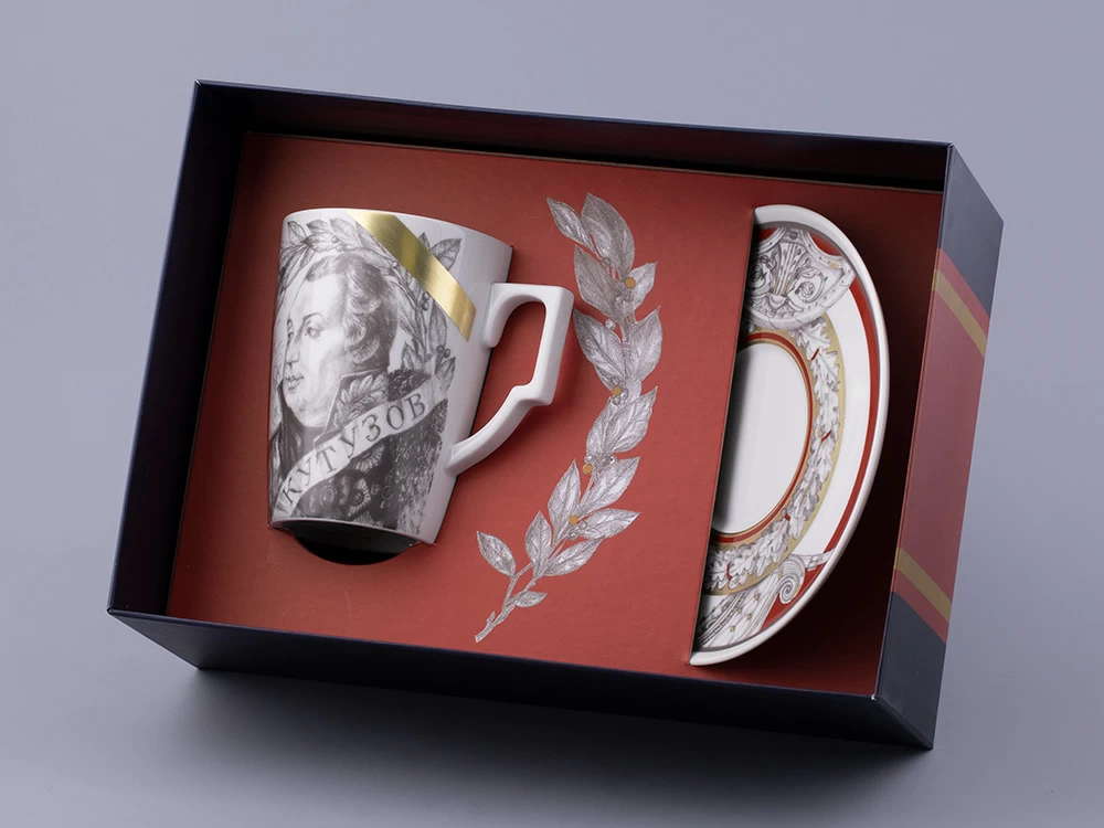 Бокал входит в серию «Полководцы России». Генерал-фельдмаршал Михаил Кутузов (1745-1813) вписал свое имя в отечественную историю военными и дипломатическими успехами. Среди важнейших – победа русской армии над наполеоновскими войсками. Образ Михаила Илларионовича Кутузова на фарфоре выполнен по мотивам портрета полководца (1829 г.) и проникнут спокойствием, достоинством и внутренней силой. Портрет полководца дополнен элементами трофейного декора, а также дубовыми и лавровыми венками – символами мужества, силы, доблести и славы. Торжественности бокалу добавляют элементы, выполненные в насыщенном красно-терракотовом оттенке, а также с использованием натурального золота и цировкой. Бокал представлен в виде подарочного набора в премиальной упаковке.