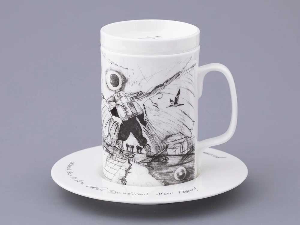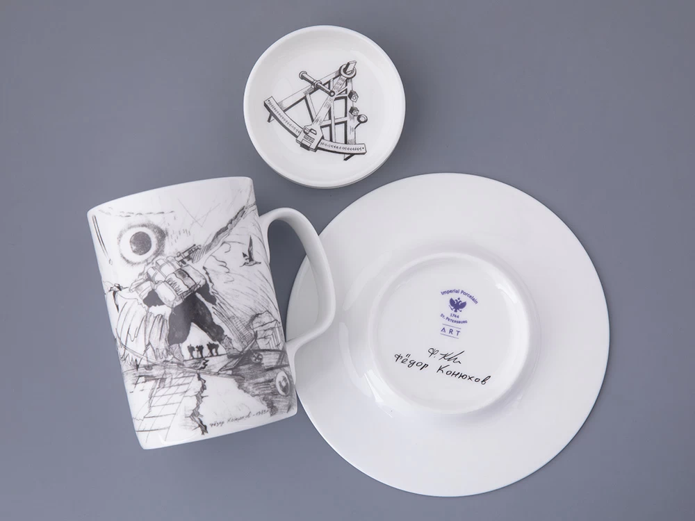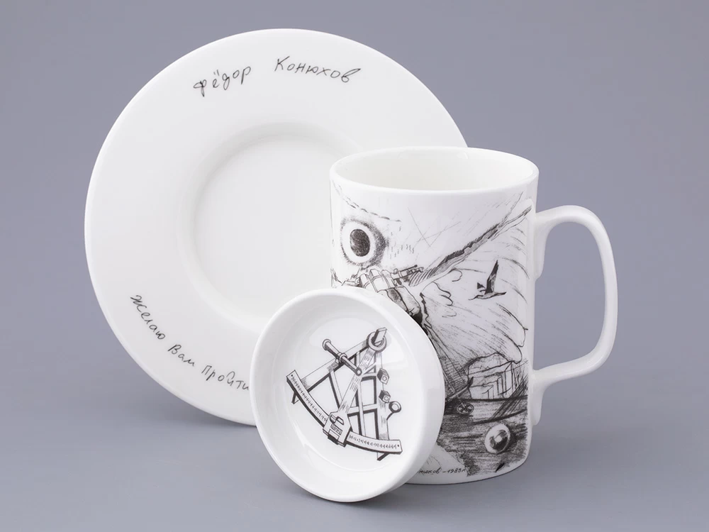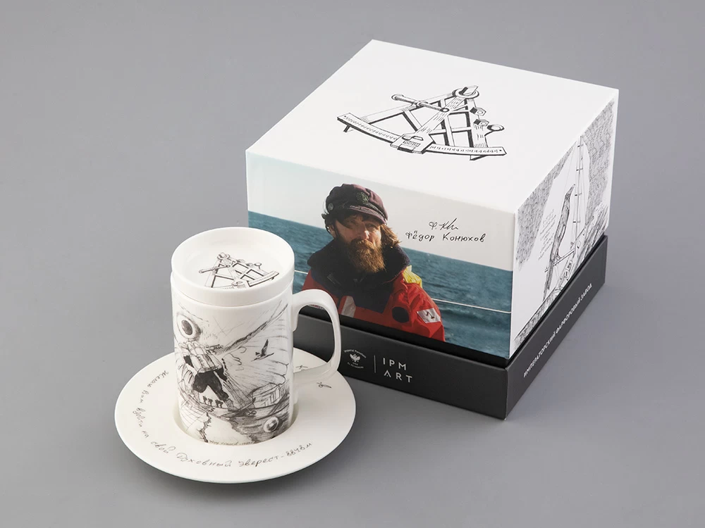 Подарочный набор вошел в эксклюзивную коллекцию фарфора, созданную Императорским фарфоровым заводом и Фёдором Конюховым. Каждое изделие пропитано духом путешествий, открытий и приключений. Все рисунки сделаны самим путешественником во время его странствий. Рисунок «Путь на Север» украшает бокал из костяного фарфора. Этот эскиз родился в момент подготовки Фёдора Конюхова к лыжной экспедиции на Северный полюс в команде Дмитрия Шпаро.