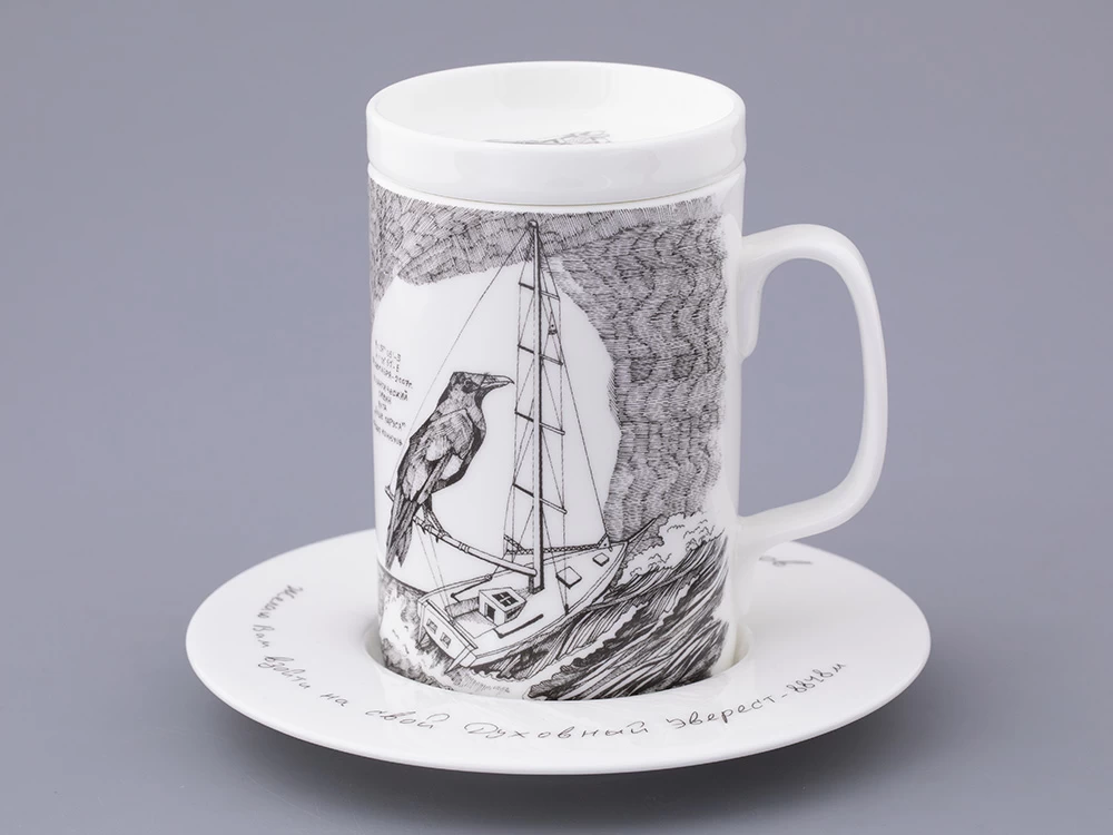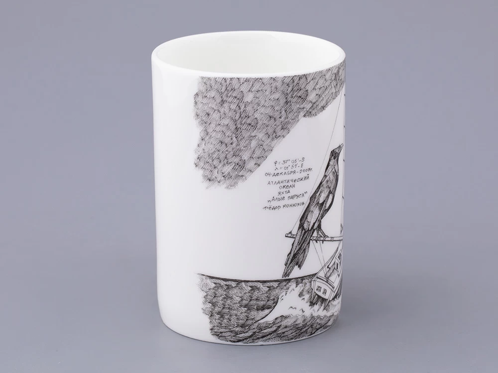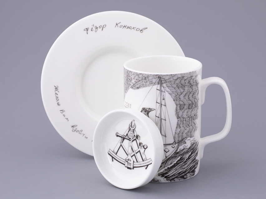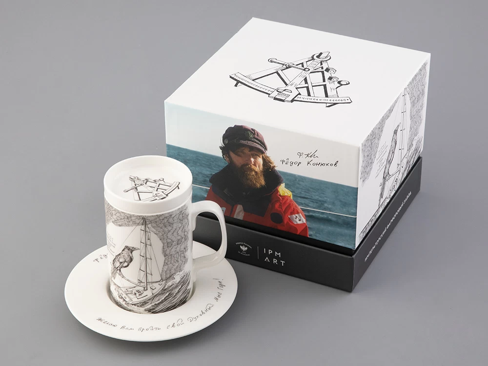 Подарочный набор вошел в эксклюзивную коллекцию фарфора, созданную Императорским фарфоровым заводом и Фёдором Конюховым. Каждое изделие пропитано духом путешествий, открытий и приключений. Все рисунки сделаны самим путешественником во время его странствий. Рисунок на бокале называется «Алые паруса». Эскиз Фёдор Конюхов выполнил в океане во время своего одиночного плавания вокруг Антарктиды.