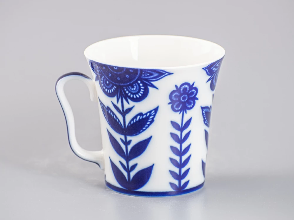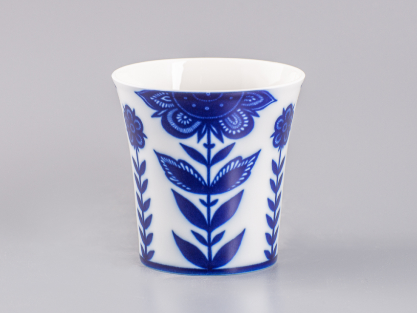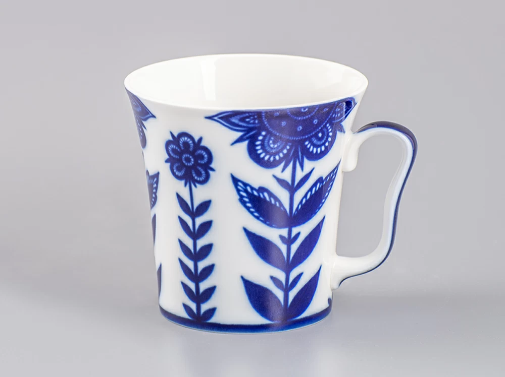 Рисунок «Флёр» был разработан современным автором Юлией Чистяковой на основе графической стилистики бокала «Птицы» признанного художника XX века Нины Славиной. В 70-80-е годы Нина Славина была главным художником завода и активно работала с технологией печати рисунков кобальтом для больших тиражей. Любимые Славиной народные мотивы в кобальтовом исполнении художник Юлия Чистякова развила в совершенно новую серию. Рисунок отсылает к наивной и смелой народной росписи, а современное композиционное решение позволяет использовать посуду в модной современной сервировке.