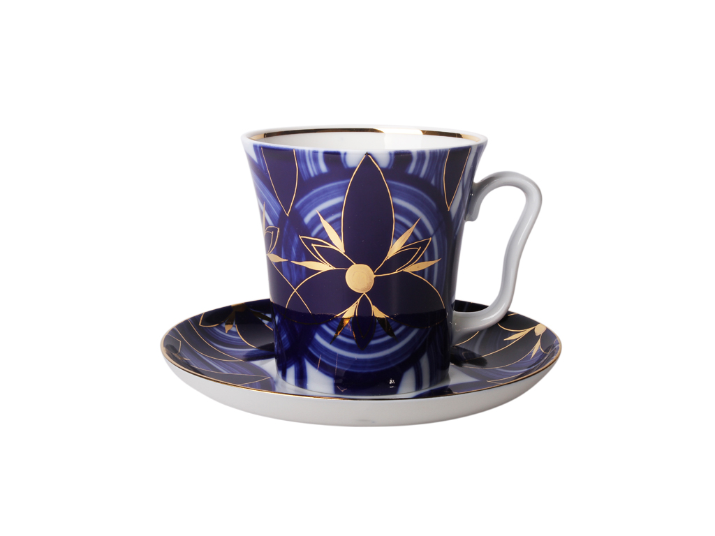 Кружка «Вертолет» - изделие с элегантным и минималистичным декором в виде абстрактных узоров, отсылающих зрителей к ассоциации с вертолетным винтом в момент взлета. В изумительной абстракции мы видим как такой обыкновенный процесс как взлет вертолета становится в интерпретации художника настоящим произведением искусства: винт похож на цветок, а расходящиеся в стороны круги поддерживают единство геометрической композиции. Абстрактное изображение выполнено в элегантном классическом стиле – подглазурный кобальт с использованием золота. Созданный ансамбль позволяет увидеть прекрасное в самых простых вещах.