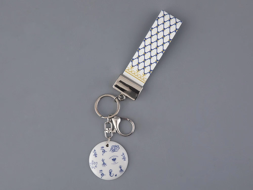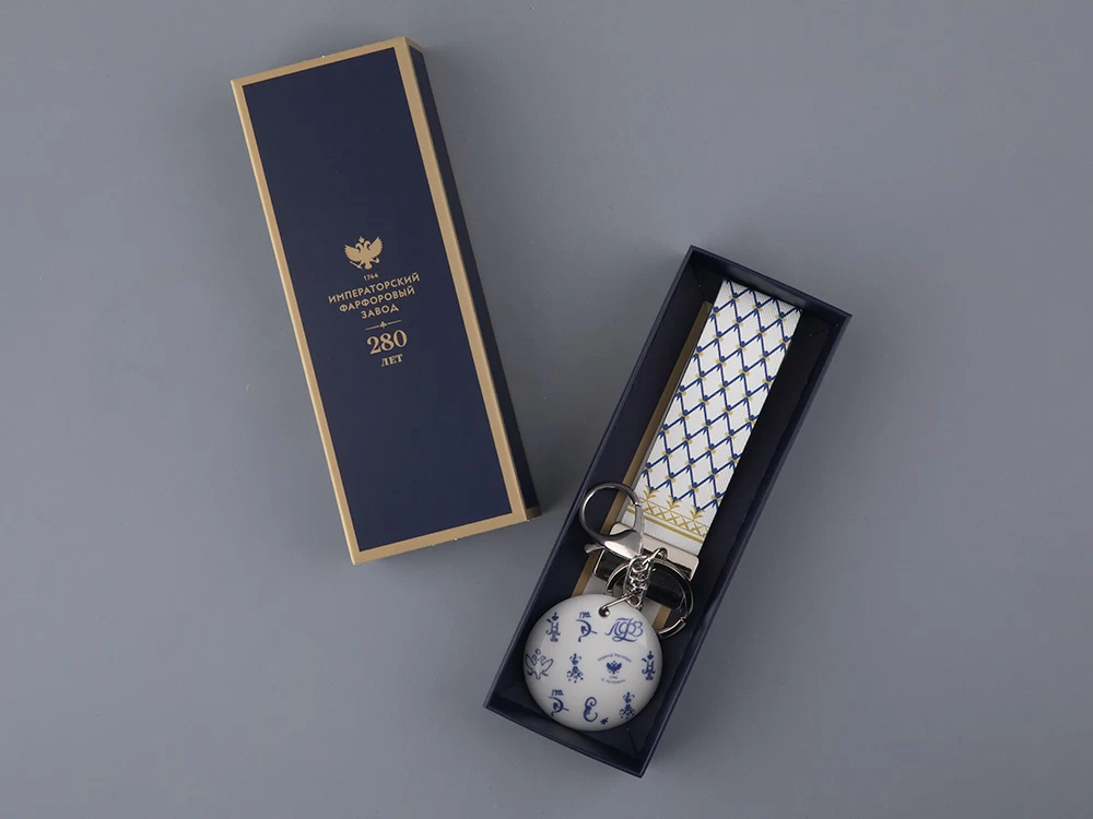 С момента основания Императорского фарфорового завода (в 1744 году он именовался Невской Порцелиновой мануфактурой) мастера отмечали изделия специальными знаками. Заводские марки прошли долгий путь от рукописных изображений герба или монограммы правителя до типовых штампов. И сегодня марка завода является отличительным знаком производителя, признаком подлинности и высокого качества. Брелок вошел в линейку фарфора «Лого». Он декорирован изображениями марок и знаков, которые ставились на предметы, изготовленные на ИФЗ с начала действия производства в середине XVIII века до наших дней. Помимо брелоков в серию вошли чайные пары с заводскими марками разных лет.