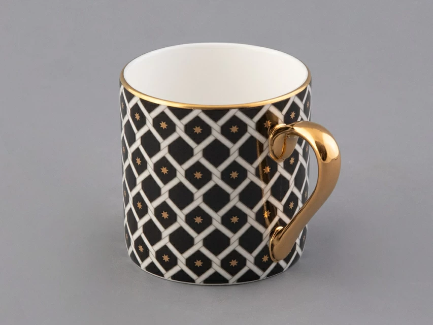 Кофейная чашка «Неро» – стильный элемент вашей сервировки. В декоре автор эффектно применяет инверсию, заполняя черным цветом либо фон (на чашке), либо орнамент (на блюдце).