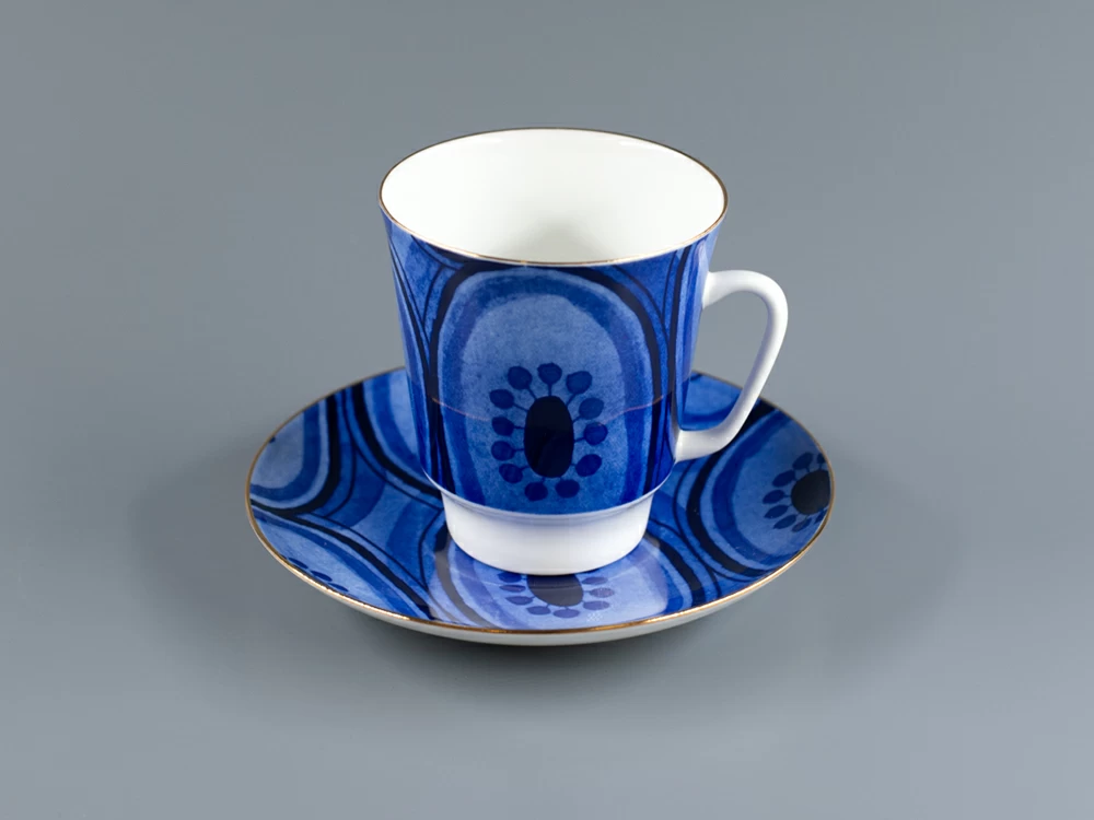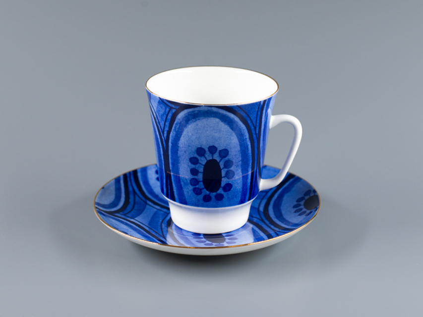 Серия чашек с блюдцами «Настроение» исполнена из тонкостенного костяного фарфора. Коллекция выполнена в монохромной цветовой гамме. Строгие геометрические линии смягчает свободный стиль исполнения. Изделия украшены золотой отводкой.