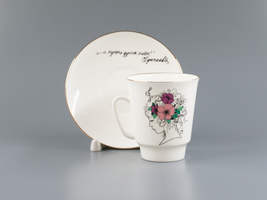 Чашка с блюдцем 165 мл, форма Майская, рисунок И пусть душа поет… , арт. 81.24578.00.1