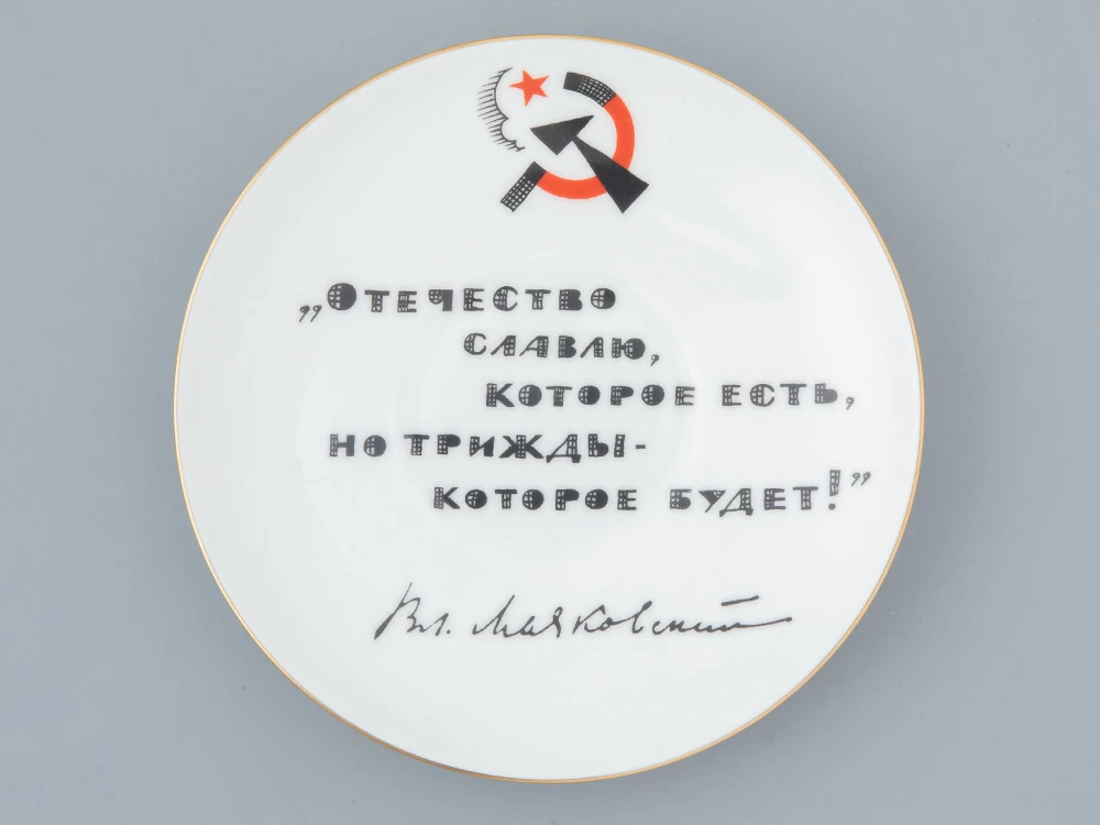 Поэму «Хорошо!» Маяковский написал в 1927 году к десятилетию Великой Октябрьской революции. В произведении автор говорит о важности и необходимости происходящих в стране трансформаций, в строках сквозят надежда, воодушевление и безмерная любовь к своему Отечеству. Чтобы сохранить ритм и интонацию, заложенную автором, Сергей Соколов располагает цитату на блюдце характерной для Маяковского «лесенкой».