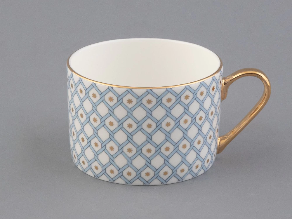 Чашка с блюдцем «Азур» отличаются изысканным декором, представляющим собой современную вариацию на тему знаменитой росписи Императорского фарфорового завода «Кобальтовая сетка», прототипом которой, в свою очередь, является Собственный сервиз Елизаветы Петровны середины XVIII века.