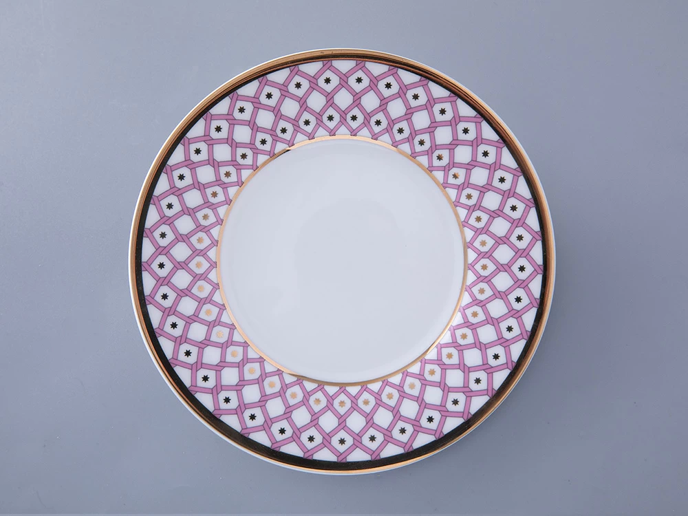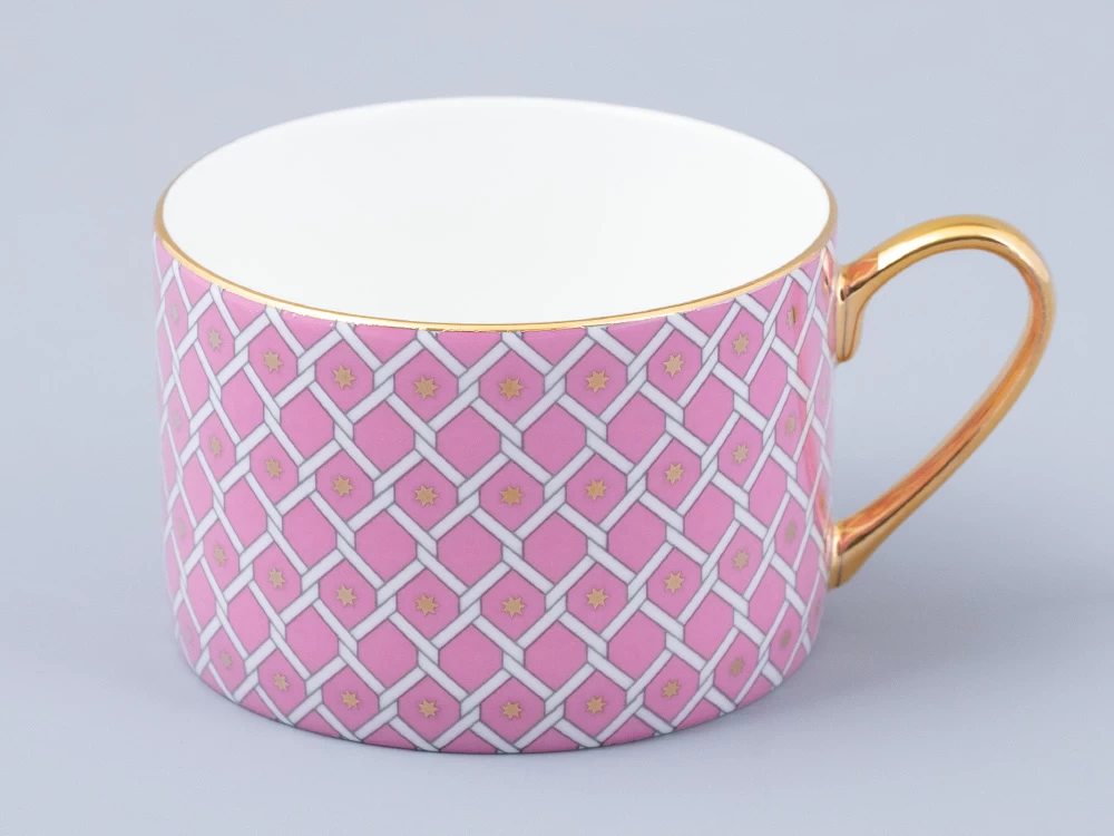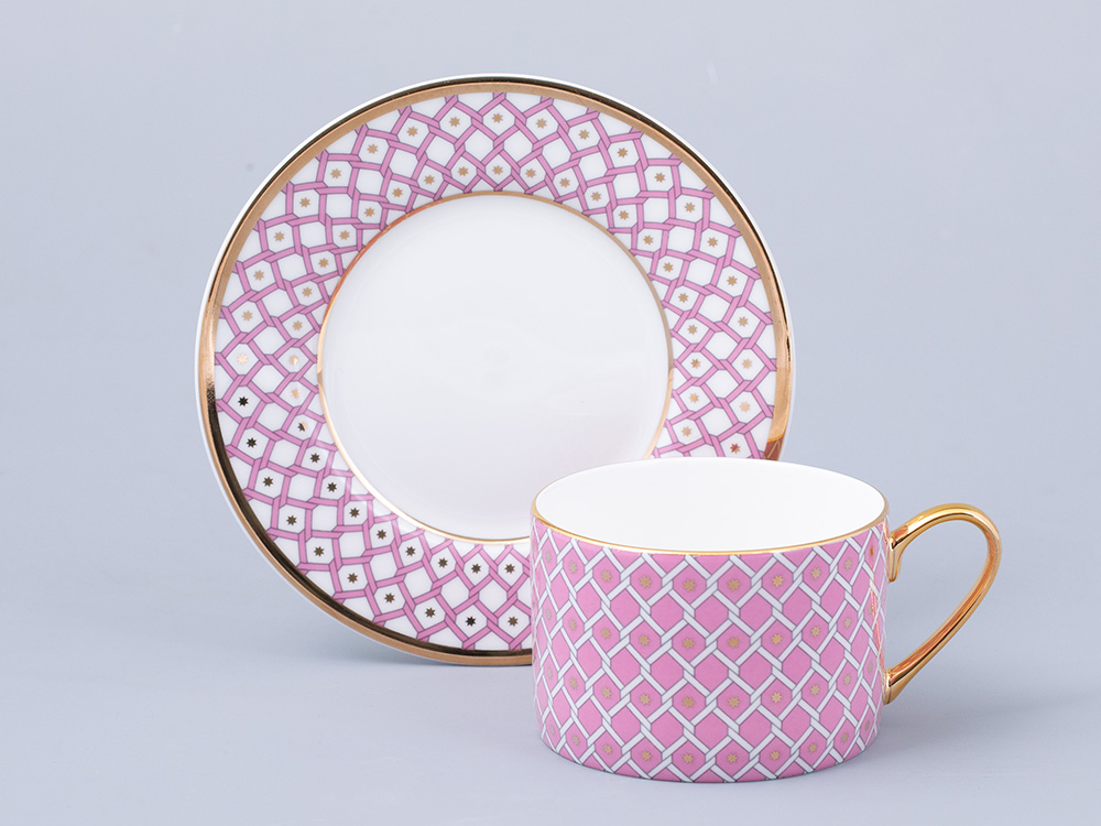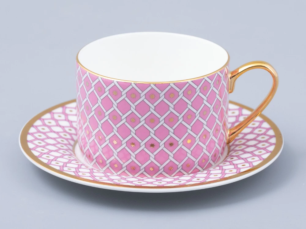 Розово-фиолетовый – один из самых популярных оттенков 2023 года. Нежный, волнующий, благородный, он напоминает лепестки редчайших цветов или диковинные розовые кораллы. Благодаря своей сбалансированности, этот цвет придает сетчатому узору на фарфоре особую деликатность и женственность.