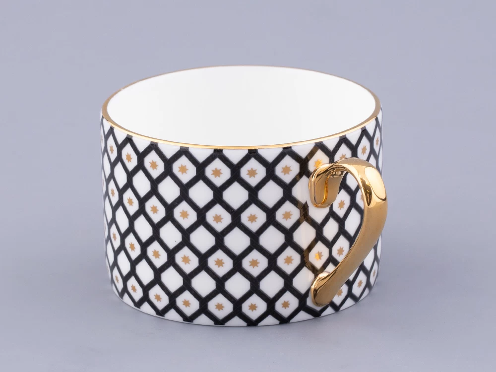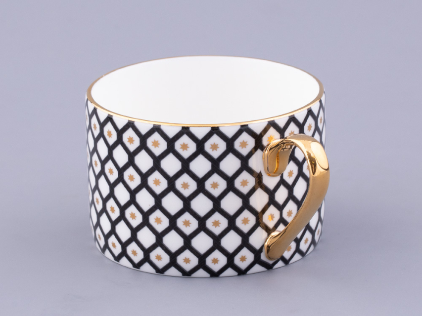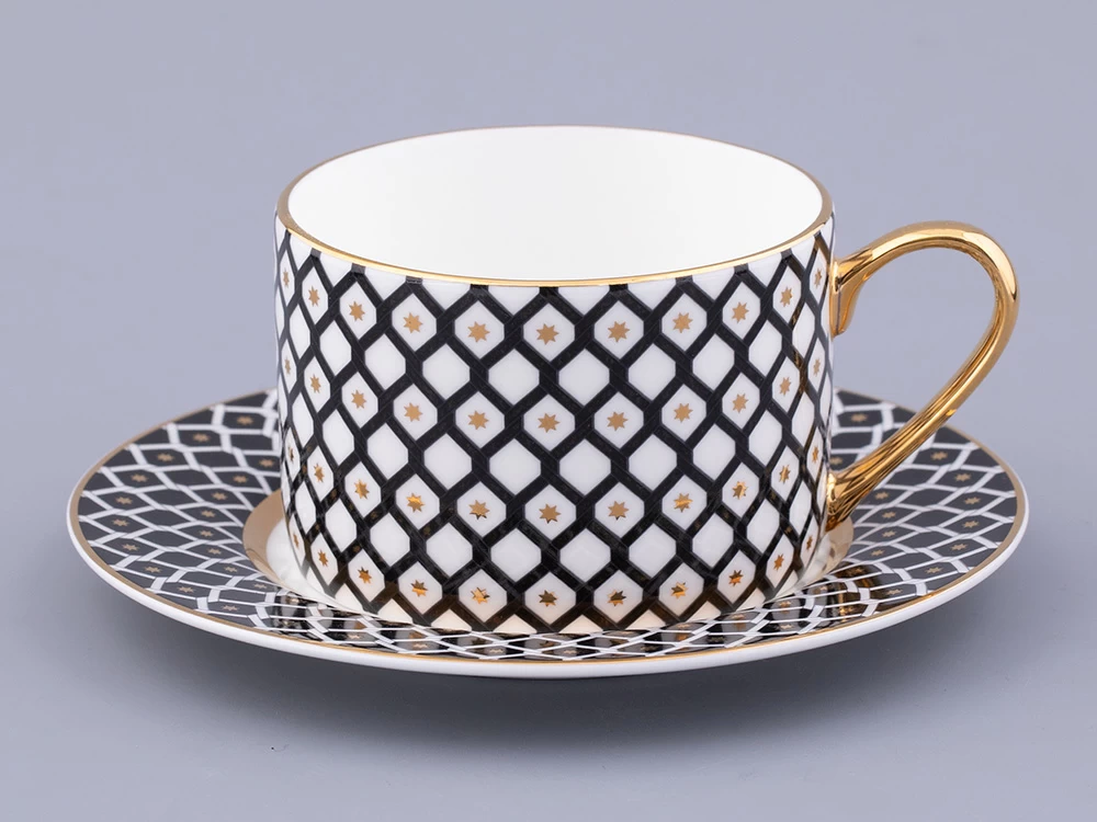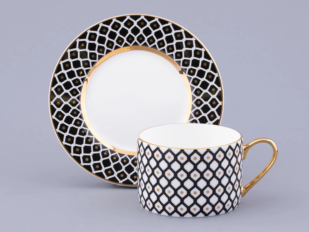 Чайная пара «Неро» – стильный элемент вашей сервировки. В декоре автор эффектно применяет инверсию, заполняя черным цветом либо фон (на блюдце), либо орнамент (на чашке).