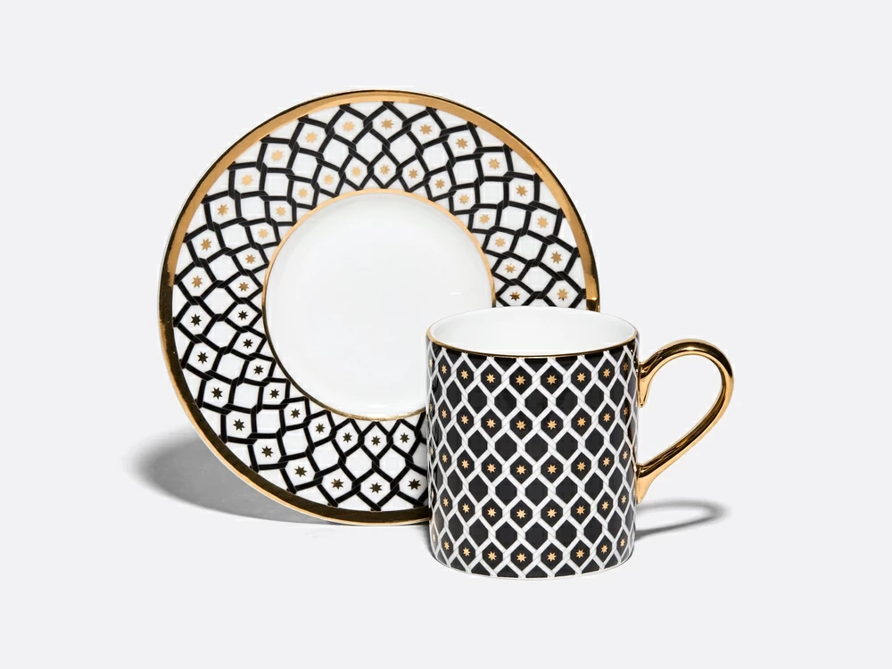 Кофейная пара «Неро» – стильный элемент вашей сервировки. В декоре автор эффектно применяет инверсию, заполняя черным цветом либо фон (на чашке), либо орнамент (на блюдце).