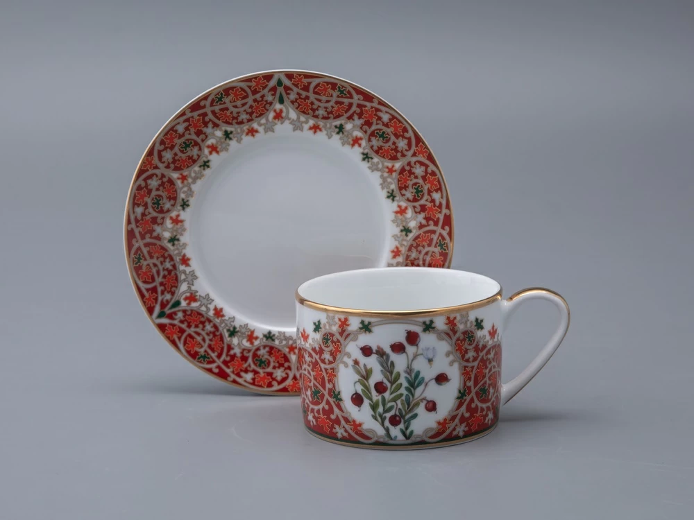 Чашка с блюдцем 250 мл в подарочной упаковке форма Соло рисунок Клюква заповедная, арт. 81.34280.00.1